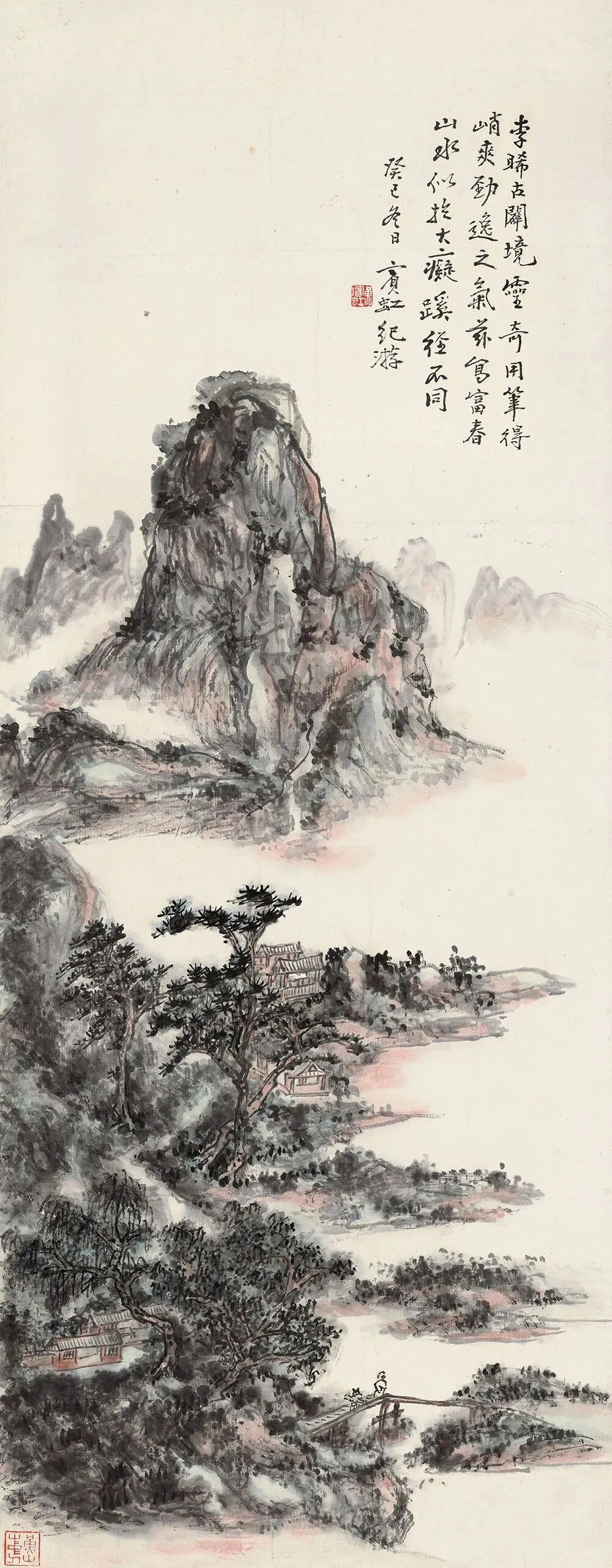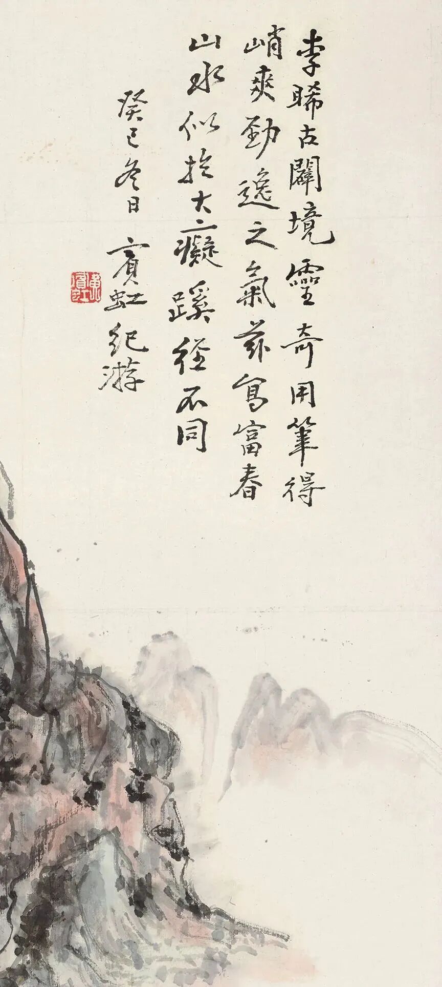 题识 李晞古闢境灵奇,用笔得峭爽劲逸之气。兹写富春山水,似于大痴蹊径不同。癸巳冬日,宾虹纪游。