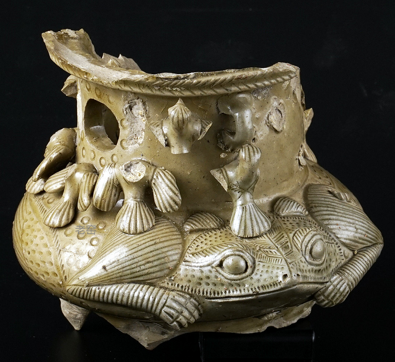 东晋 越窑青瓷堆塑蛙纹四系罐