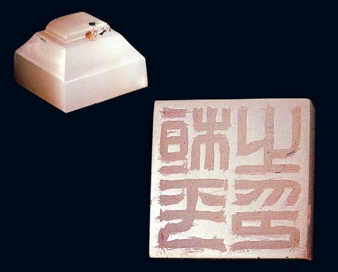 玉印1件,边宽1.92厘米,通高1.43厘米。