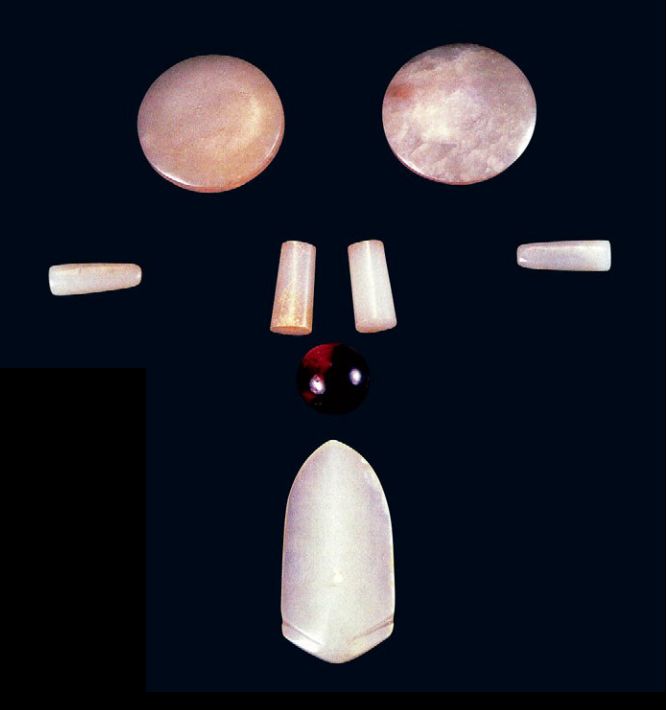 玉窍塞一组8件,包括眼罩2件、2件、耳塞2件、口 2件。