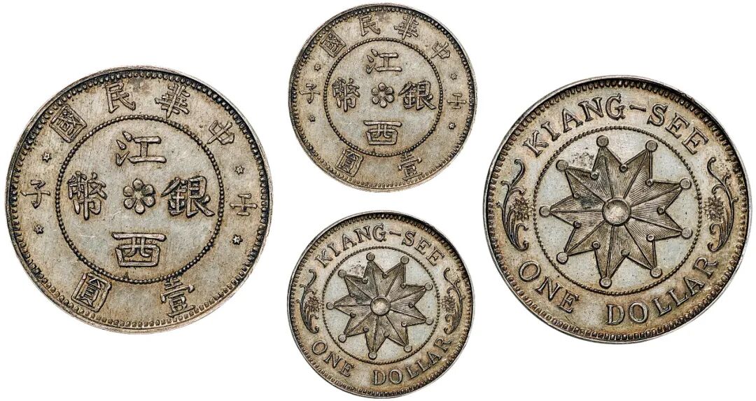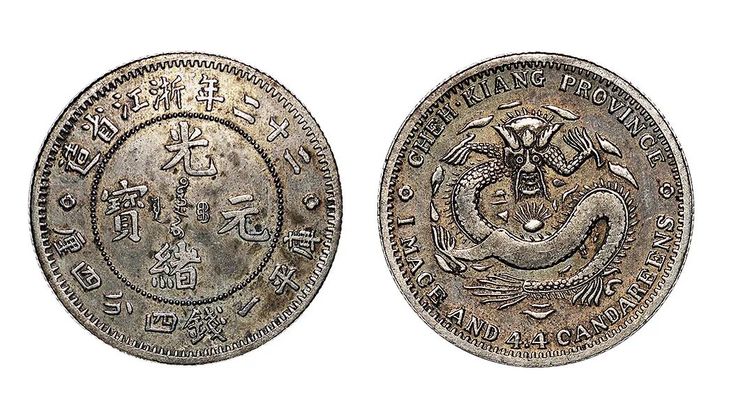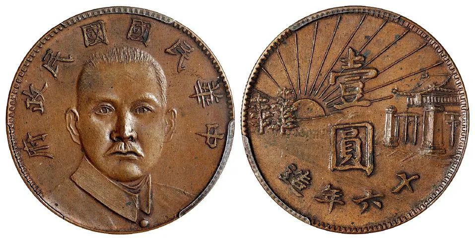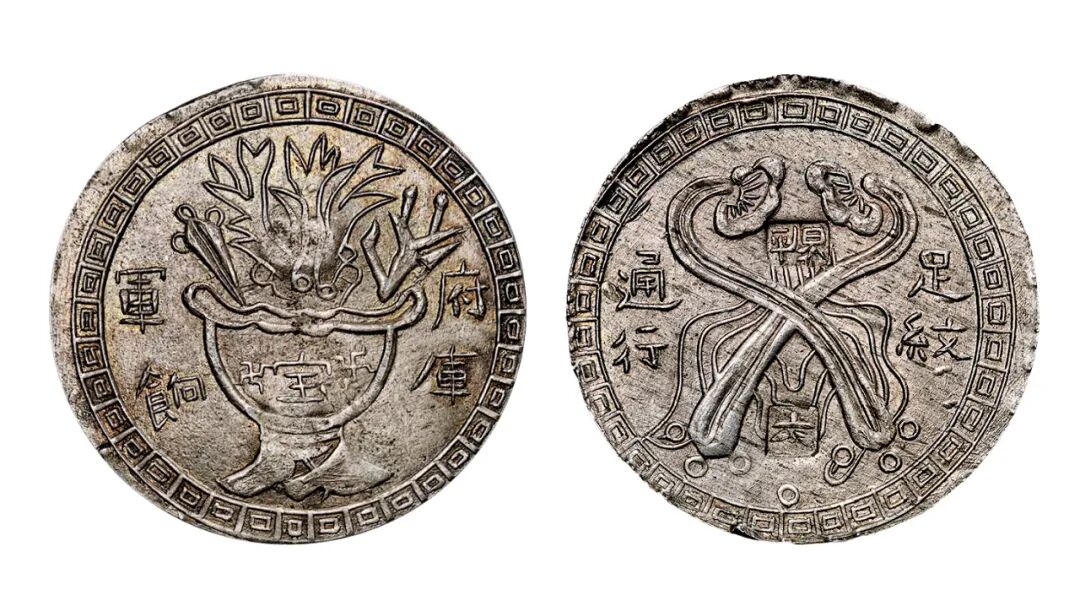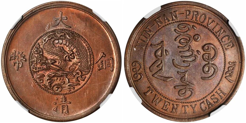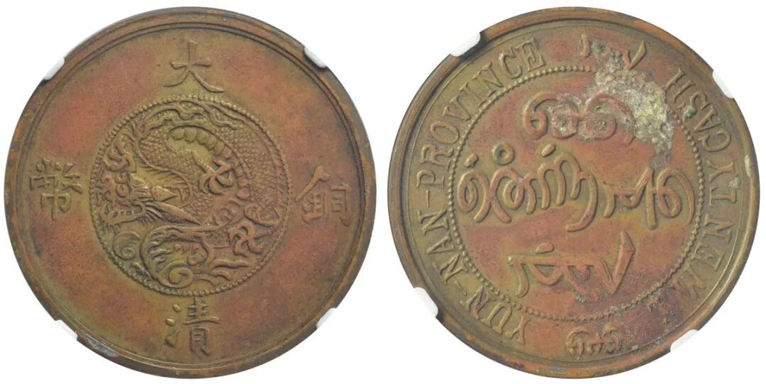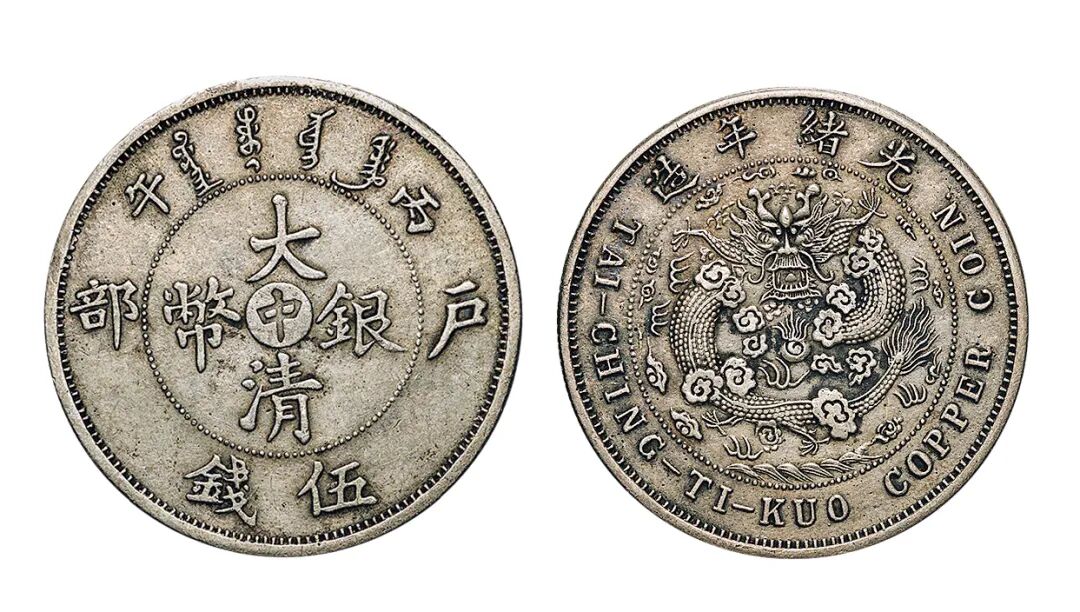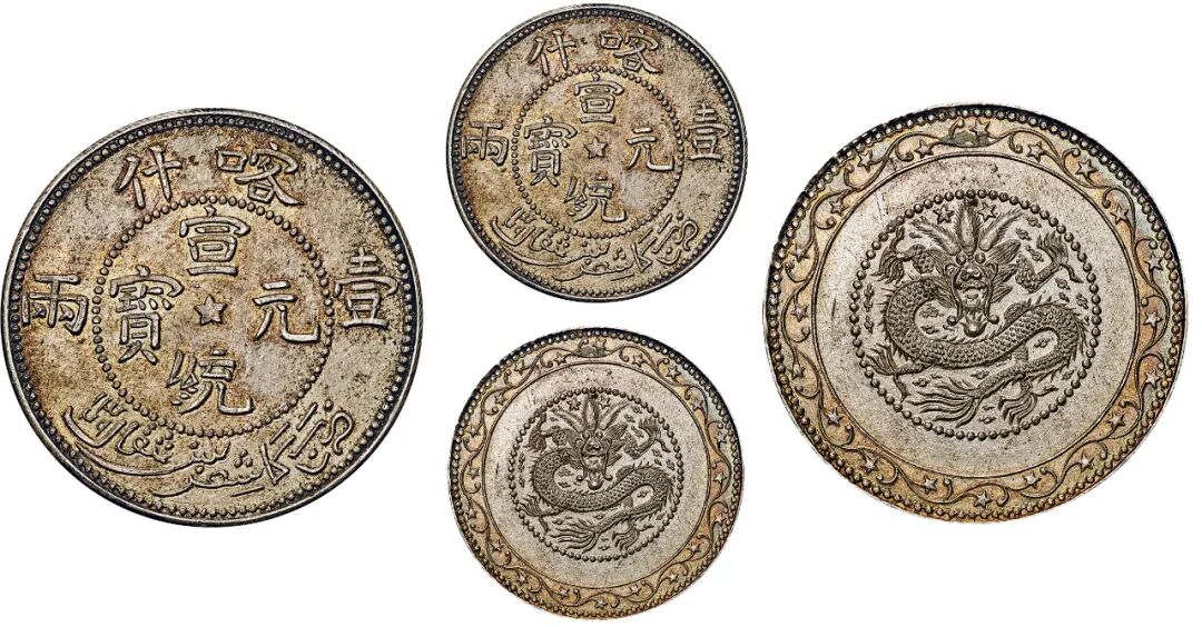 20世纪初,民国时期,在北京、天津、上海等一些大城市,币商或者一些银楼,悄悄仿着银币真品翻版私造;有人为了追求出谱猎奇,有的还为了填补空白,私自设计臆制当时的“假银元”;内容题材丰富比如有道光皇帝、皇后像银币、道光寿星异品银币、同治皇帝像恭进银币、光绪“乙酉”载活、慈禧像银币光绪、慈禧像恭进银币、四川省造光绪、慈禧像银币、光绪皇帝遗像银币、宣统皇帝登基像银币、“洪宪”帝装像银币、“洪宪纪元”飞龙银币张勋像“复辟纪念”银币等等;(其实主要是名家旧藏带来的价值)正面道光帝正面像,外圈为交织的几何图案;反面中央龙面朝前,边缘花饰汉字铭文"道光元年";品相一流,两面边缘均有包浆,PCGS MS 64;SBP2021年香港拍卖中,以36000美元成交,折合人民币约23万;正面皇后像外有几何纹交织环绕,反面孔雀开屏,边缘花饰铭文"道光元年"。近原厂状态,底板闪烁光辉,两面边缘均有多彩包浆,PCGS MS65,与上一枚道光银币完美配对;SBP2021年香港拍卖中,以33600美元成交,折合人民币约21万;宣统年造宣统皇帝像背云南水龙图臆造银币(1909)