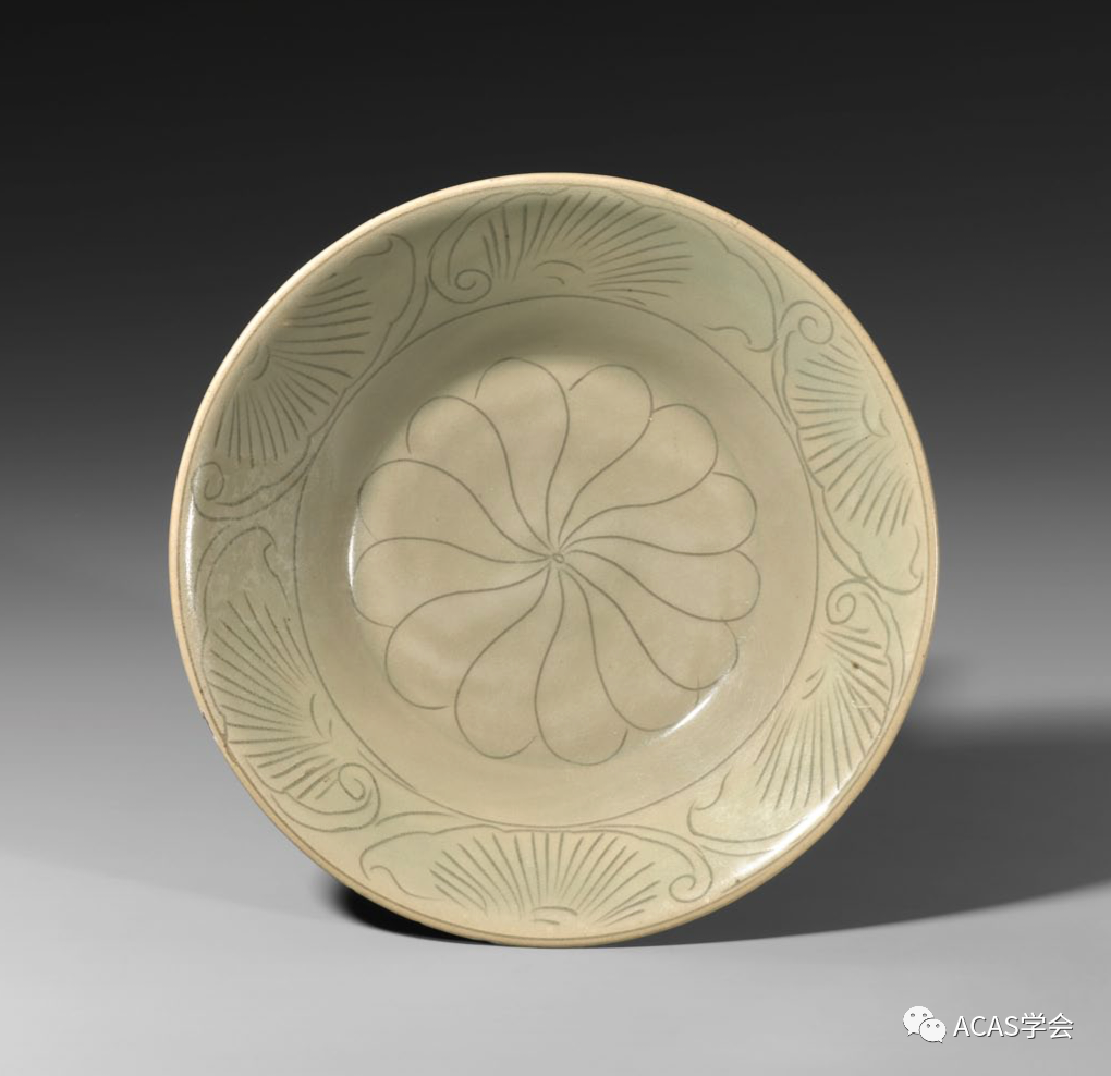 五代耀州青瓷划花菊瓣卷草纹盘