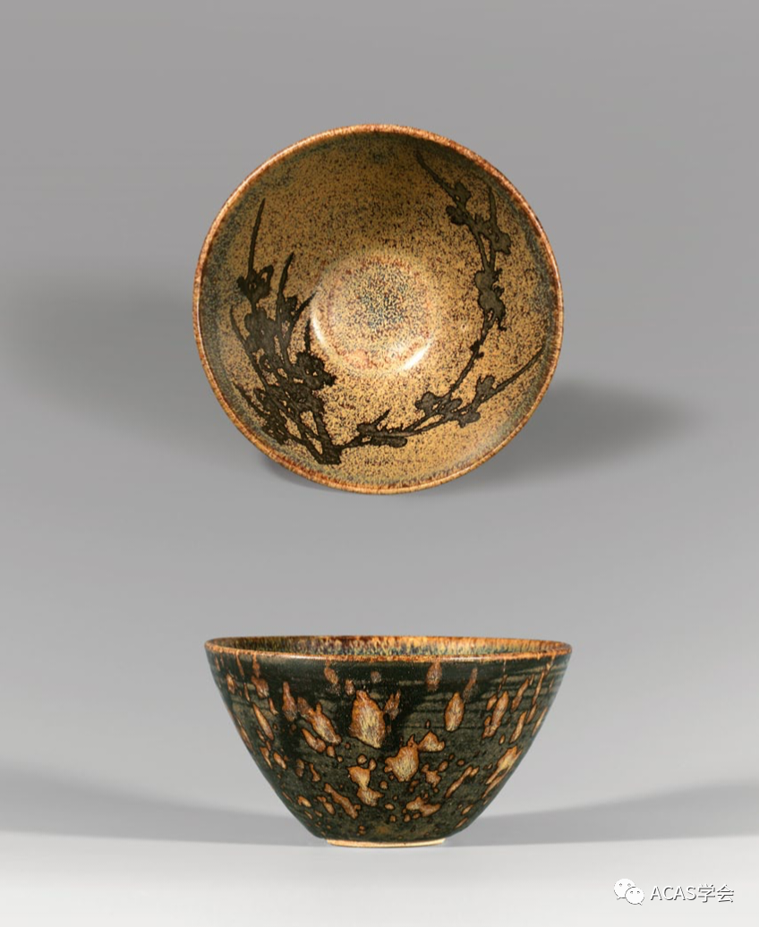 宋吉州黑釉月影白梅纹盏