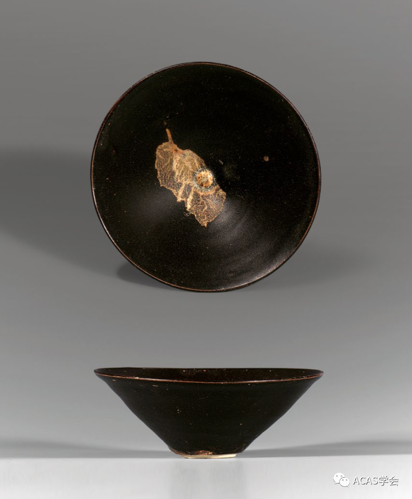 宋吉州黑釉木叶纹斗笠碗