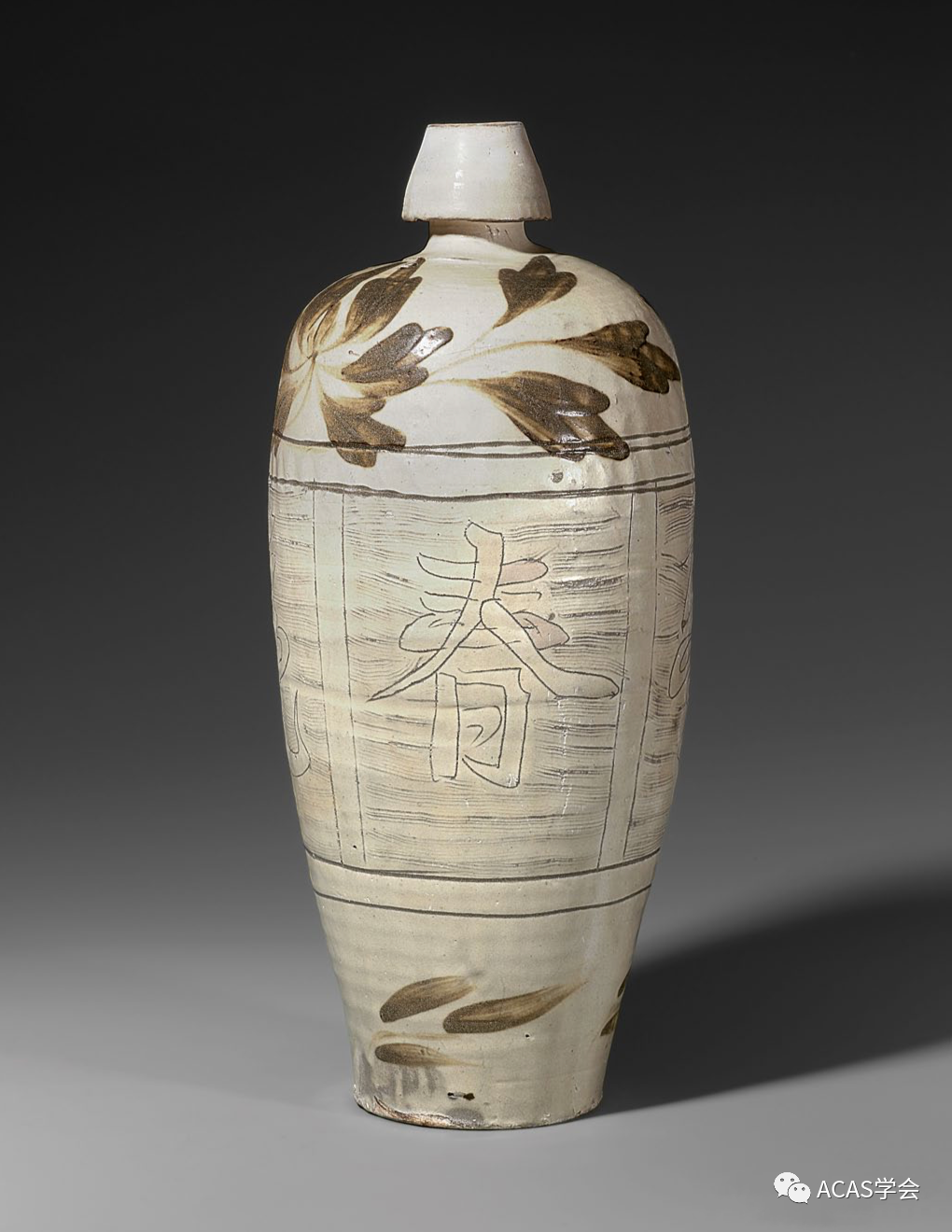 金磁州白地褐彩划花梅瓶