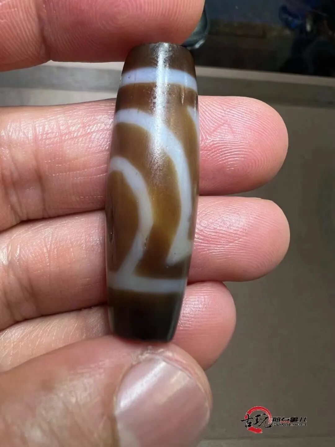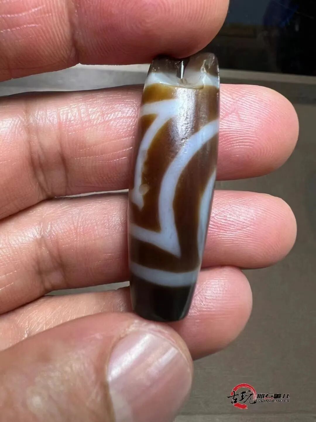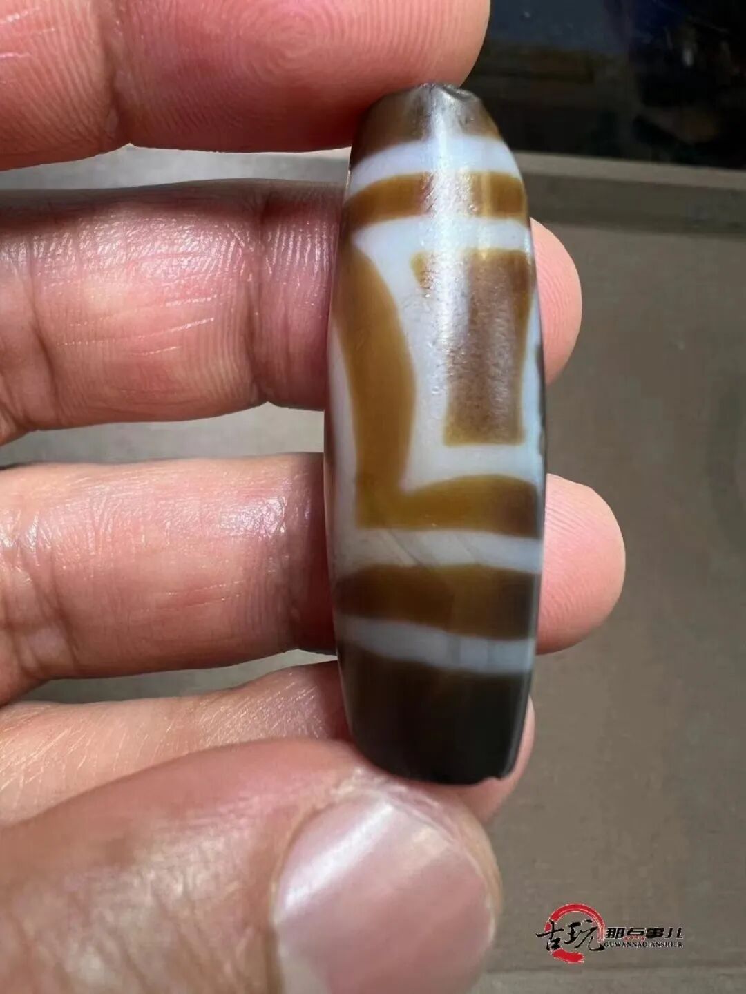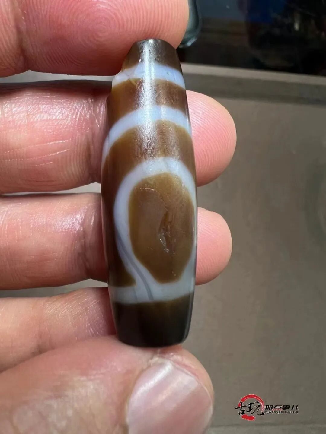 早期石珠,花纹以眼形纹(即圆圈纹)为主要特征,最早见于公元前3000- 前2000 年摩亨佐达罗和哈拉巴遗址,英国考古学家马歇尔在巴基斯坦印度河文明古遗址发现许多蚀花肉红石髓珠。很早就传入美索不达米,见于伊拉克吉什(Kish)、乌尔(Ur)等苏美尔文化遗址,美国宾夕法尼亚大学博物馆藏有公元前2113- 前2006 年乌尔王陵发掘品。