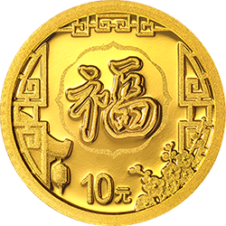 2017年福字币背面图案主题为“进院见福”。整个币面参照了北方建筑样式,横梁上的中国结、灯笼和照壁上的对联“天增岁月人增寿,春满乾坤福满门”为这枚币增添了浓浓的年味!