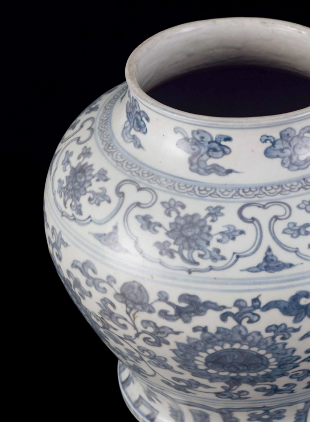 Lot497 明宣德 青花宝相花纹抱月瓶