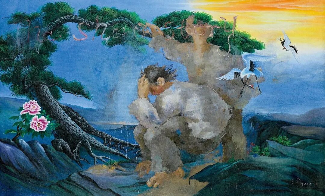 签名:《移山》高瑀 2012 布面丙烯 285x150 cmx3(画背)