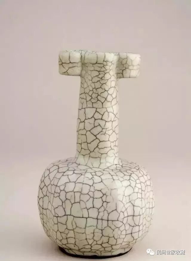 元 哥窑类型 浅米黄釉贯耳扁壶