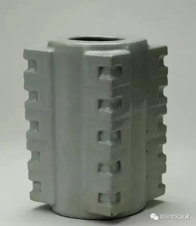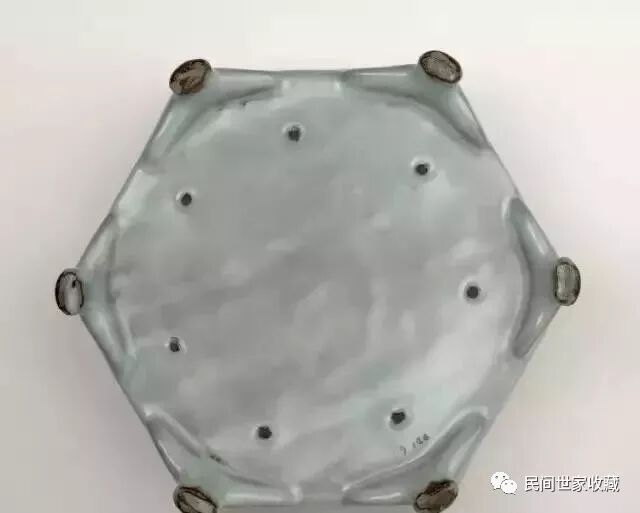 清 乾隆 官窑风格 浅青釉六方贯耳壶