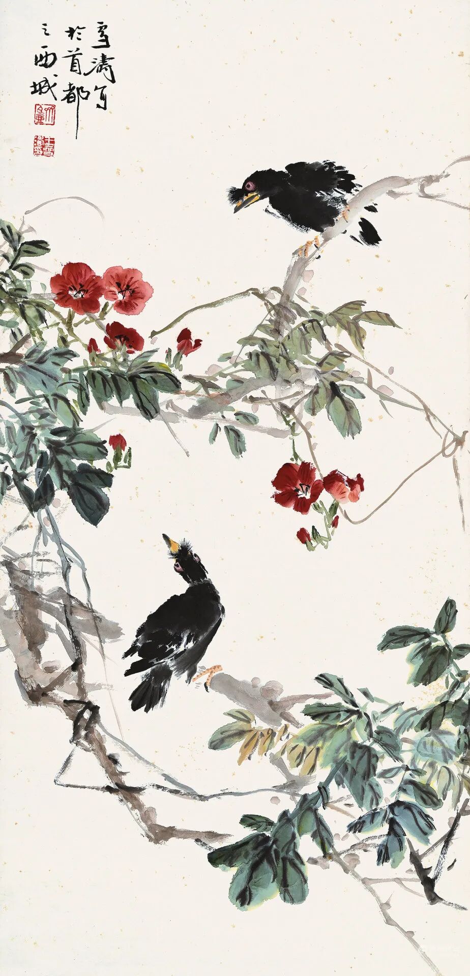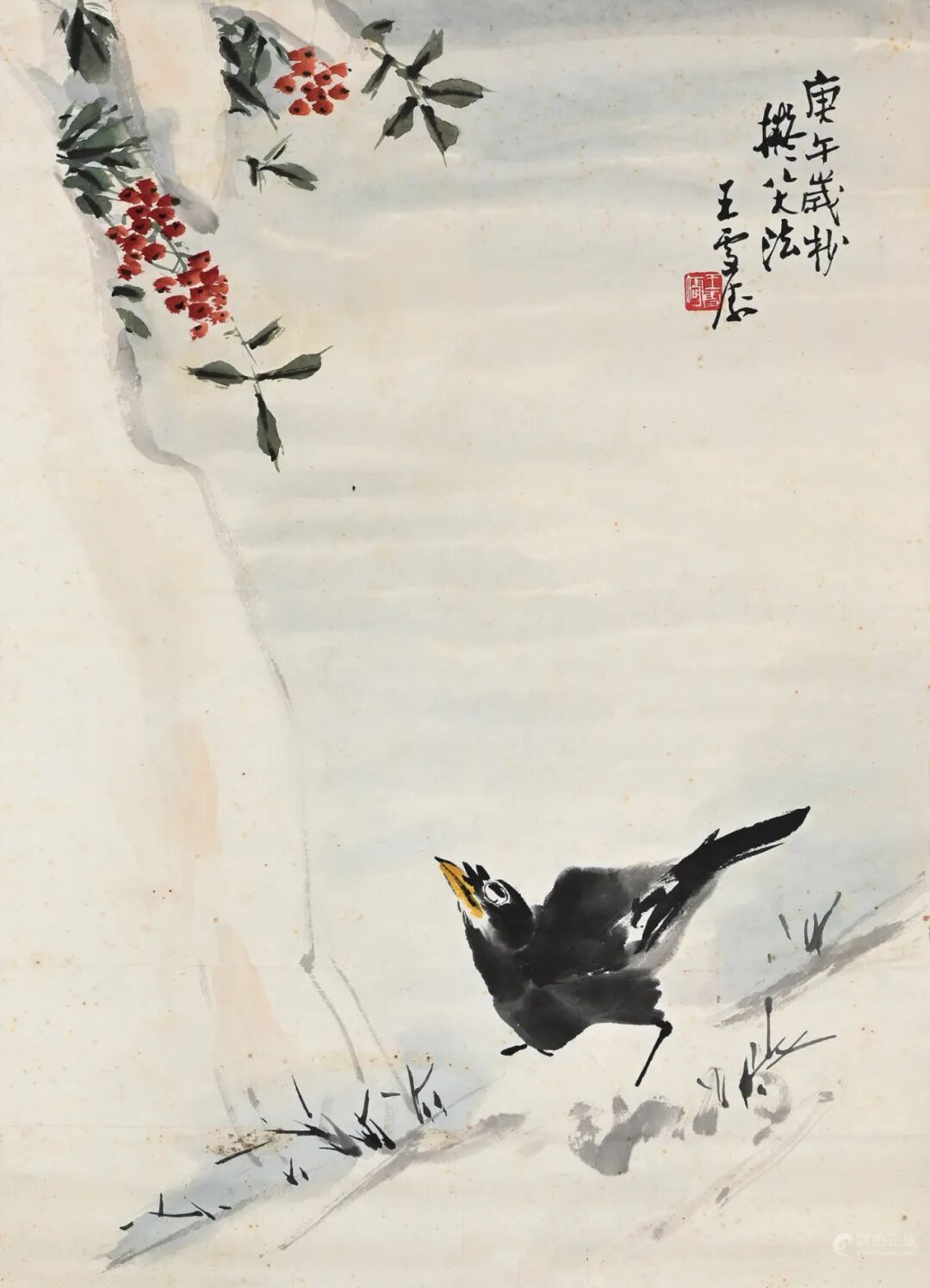 1923年应日本著名画家桥本关雪之邀钱瘦铁首次赴日举办画展,1935年钱瘦铁携全家东渡日本以刻印卖画为生,从1923年至1949年前后26年间,他曾长期在日本从事书画篆刻活动,影响甚大。本专场为生垣良作先生旧藏,生垣良作,石川県凤至郡神野村第20代(1948-1951)村长。从本专题的一件钱瘦铁写给生垣良作先生的书法作品可知,二人应该是通过桥本关雪相识。这些作品时间跨度从1932年至1941年,这期间中日经历了九一八事变、日本全面侵华战争。1932年,钱瘦铁与王一亭、孙雪泥、汪亚尘等呼吁艺术救国,以捐赠书画义卖支持东北抗日义勇军。据此推测这些作品正是当时为图艺术救国所作。除此,生垣良作先生旧藏的几通吴昌硕写给好友沈石友的信件也将呈现给藏家,信件每每述及“匪盗横行”、“无天日”、“国土沦丧”,慨叹国人衰颓艰难之愤慨……见证了那段在国难危机关头,中华同胞同仇敌忾,抵御外侮的铁骨丹心。拍品估价:300,000 - 900,000 日元款识:胆瓶春暖艳新妆,乍讶红儿献寿觞。本是盐梅夸妙手,欲将清味入羹汤。岁在重光大荒落嘉平之月,瘦铁。拍品估价:120,000 - 360,000 日元款识:高楼寒色蔓城阴,眼底山河怅陆湛。肯以断躯抛石药,也因多难欲登临。不闻薄俗聋为宝,如醉中原雨更湿。大麦不秋珠数米,幽忧我亦杞人心。书感客里垂垂老,相怜如性真我残。夔一足卿瘦鹤前,身群制量春草期。梳换旅薼平居数,长物夫子一诗人。赠内。石友先生教。俊卿顿首。清水安三(1891-1988),基督教牧师、教育家。崇贞学园与樱美林大学的创始人。1917年作为日本传教士第一人前往中国大连开始传教活动。1920年迁往北京,创办实务教育机关崇贞平民工读学校(1938年改名为崇贞学园)。在北京崇贞学园时结识了鲁迅和周作人两兄弟,是第一个向日本推介鲁迅作品的人。本专题涵盖民国、近代中国文化名流、书画家写赠给清水安三先生的作品,其中不乏齐白石、吴昌硕、王一亭、周作人、钱瘦铁的精品佳作。水墨纸本 立轴拍品估价:800,000 - 2,400,000 日元款识:中岁颇好道,晚家南山陲。兴来每独往,胜事空自知。行到水穷处,坐看云起时。偶然值林叟,谈笑无还期。清水先生雅属。作人。拍品估价:1,000,000 - 3,000,000 日元齐白石绘画主张艺术「妙在似与不似之间」,形成独特的大写意绘画风格,人物、山水、花鸟都很擅长,堪称全能画家,他画的虾活灵活现,更是一绝。此幅《群虾图》可感受画家笔墨线条流畅的速度感,让动感十足的每只虾充满活力。群虾从右上方向左下角游动,虾的墨色不但有浓淡干湿的变化,而且有伸展弯曲的不同,整个画幅未用水纹,却将虾的游动表现得活灵活现。灵动而呈半透明质感的群虾嬉戏在水中,或急或缓,或集或散,疏密有致,浓淡相宜,情态各异,着实惹人喜爱。拍品估价:600,000 - 1,800,000 日元2.日本古鸟经现存目录,思文阁出版著录,仅提供复印件本专题由京都资深藏家臻品汇聚而成,共计20件书画精品,当中不乏吴昌硕、齐白石、周怀民、刘春霖、谢无量等书画名家的精彩佳构。如齐白石《老来红》,画幅将老来红、顽石入画,寓意健康长寿。画幅左下陈半丁题记:甲子前后,此老一意追求缶老,是作正其时也。牵出一段吴、齐二人间的交往恩怨。不失为研究齐白石艺术风格演变见证的佳作。另有吉林省体科所于1980年赠予片桐理事长的齐白石《群虾图》、吴昌硕《芦花如雪》、周怀民《观涧图》都是难得的精品佳作。拍品估价:300,000 - 900,000 日元款识:林际飞流银汉长,水边细草紫蘅香。奔雷峡底云腾起,疑是匡山瀑布旁。怀民周仁写于北平。此幅《观涧图》画面绘两位高士立于飞瀑、深渊之崖,一高士俯首望向深潭,另一高士抬首仰望松瀑,想必是被这松崖飞瀑的雄壮气势所震撼。作者构图亦极为讲究,顶天立地式的布局突出了瀑布飞流直下的雄壮气势。几组枝繁叶茂的松树掩映于瀑布的首尾两端,避免了直白的艺术表现,从侧面烘托了画面气氛。用浓重的笔墨点染瀑布两边的石壁,其余部分留出空白,增加了画面的空间感。巧妙的构图、变化有致的笔法、浓淡相宜的墨色使得画面丰满完整而不显杂乱。极有北宋山水神韵。拍品估价:1,200,000 - 3,600,000 日元款识:天伴朱霞相映好,老来颜色似花红。白石山翁并题陈半丁题跋:甲子前后,此老一意追求缶老,是作正其时也。半丁记。钤印:陈半丁1922年夏的这个时间节点在白石老人的一生中显得尤为重要,正是从这年开始,齐白石曲折、颠沛的北漂生涯逐渐有了起色。一方面,在生活上,白石老人苦逼的搬家生涯告一段落,逐渐稳定下来,终于有了一个安静稳定的居所进行艺术创作。另一方面,白石老人的作品在扶桑日本的展卖大获成功,极大地提升了齐白石在北京画坛的地位。用「春风得意」来形容此时齐白石的境遇并不为过。画幅绘两株雁来红,猩红如染,挺拔茂密,鲜艳异常。齐白石将老来红、顽石入画,寓意健康长寿。画幅左下陈半丁题记:甲子前后,此老一意追求缶老,是作正其时也。牵出一段吴、齐二人间的交往恩怨。不失为研究齐白石艺术风格演变见证的佳作。齐白石的北漂生涯,无论从生活还是艺术创作都像极了画幅中的两株「老少年」,虽然生命已近暮年,却猩红如染,虽然生活坚苦未知,却豁达坚韧,依然如青年一般勇往直前。拍品估价:1,200,000 - 3,600,000 日元说明:此作品由吉林省体科所于1980年赠予片桐