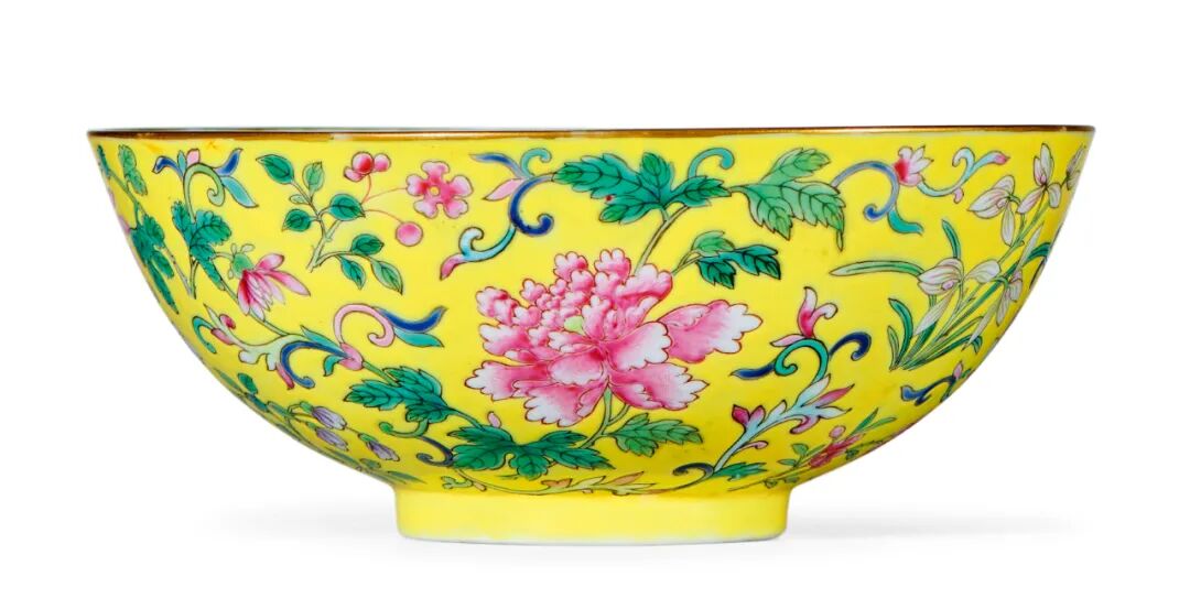 拍品估价:400,000 - 600,000 人民币2.《故宫博物院藏慎德堂款瓷器》,故宫出版社,2014年,页86、87,图16本品端庄典雅,胎体纤薄坚致,外壁敷涂娇黄彩为色地,淡雅悦目,质感厚润匀净,彩绘各式花卉,见有牡丹、兰花、秋海棠、梅花、荷花等,花团娇艳锦簇,争相斗艳,枝叶自然婉转,华美富丽,风姿绰约,各见妍态。各花布置错落有致,颇见自然逸趣,其设计一反传统的缠枝花卉纹饰,代以各式花卉荟萃一堂,寓意群芳献瑞,又见清新雅致之气,深得雍正御瓷风韵,为别具新意之隽品。本拍品纹饰及造型与道光慎德堂御制黄地粉彩缠枝花卉纹碗纹饰完全一致,由是可见此种纹饰深合道光、咸丰两位皇帝之审美品味,故而得以传承。咸丰一朝存世短暂,内忧外患,据《清档》载,景德镇御窑厂在咸丰五年以后基本停烧,故咸丰朝制瓷数量极其有限,又因英法联军烧抢圆明园时再遭厄运,因而传世品更加稀少,本品即为一件不可多得的咸丰朝官窑器。