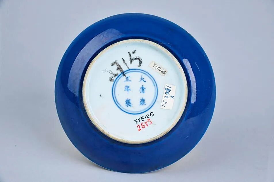 参阅:重庆中国三峡博物馆收藏之清雍正霁蓝釉盘,收藏编号2675