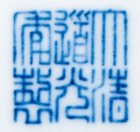 霁蓝釉与甜白、霁红釉并称宣窑三大单色釉品种,后世追慕不已。霁蓝釉品种,清宫旧称为霁青,为仿宣德宝石蓝釉烧制而成,雍正御窑厂对宣德霁蓝釉的摹仿曾有明确记载,唐英《陶成纪事碑记》中记录的五十七种釉色当中就有“仿宣窑霁青,色泽浓红,有橘皮、棕眼”。其中所称“仿宣窑霁青”即为本品“霁蓝”。拍品工艺高超,颇具宣德宝石蓝釉之风采。保存完好,极为不易。