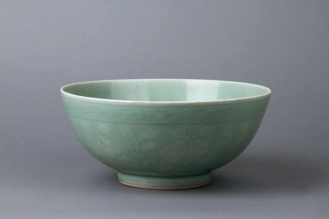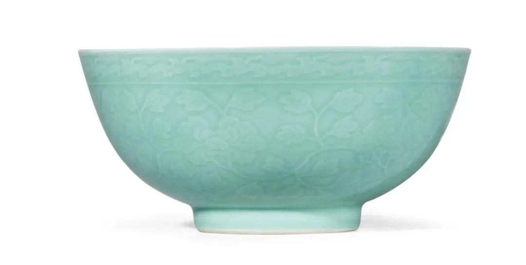 拍品估价:350,000 - 500,000 人民币1.《故宫博物院藏清代御窑瓷器》卷一下册,紫禁城出版社,2005年,页240、241,图1062.《上海博物馆藏品研究大系:清代雍正至宣统官窑瓷器》,上海人民出版社,2014年,页179,图3-38大碗胎体厚重,通体施青釉,外壁釉下凸饰卷草纹和缠枝牡丹,内壁亦为缠枝牡丹纹,但以暗刻技法为之,搭配富有变化,纹饰清晰流畅,釉质肥腴润泽。整器端庄的造型、精致的纹饰与温润似玉的粉青釉浑然一体,显示出乾隆朝高超的烧瓷技艺,体现出美观与实用的完美结合,达到了“合于天造,厌于人意”的艺术境界,为乾隆时期精品。颜色釉瓷是众多品种中,种类、釉色尤为丰富者,清乾隆时期的《南窑笔记》关于制釉工艺记载:“夫釉水配法,非有书传,亦无定则,法多配试,自有独得之妙。五金八石,皆可配入。色之诡怪,奇异不一,而足千变万化,俱成文章,神而明之,存乎其人。” 古代陶工取天然原料,经火力炼造,使得釉色天然所成,以其本色之美,展现釉之天姿,表现出其“朴素而天下莫能与之争美”的精神内涵,富有天然韵致,体现了陶瓷艺术的真谛。清代色釉瓷在继承明代的基础上,达到了炉火纯青的地步,推陈出新,创烧品种繁多。乾隆时期其色釉瓷的生产更是精益求精。邵蛰民撰《增补古今瓷器源流考》评价有“其制作之巧妙,彩色之艳丽,可谓前无古人,后无来者。”