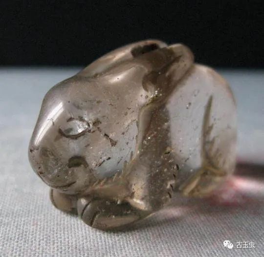 黑龙江省绥滨县金代奥里米古城内出土的水晶兔,长3.8厘米,高2.2厘米