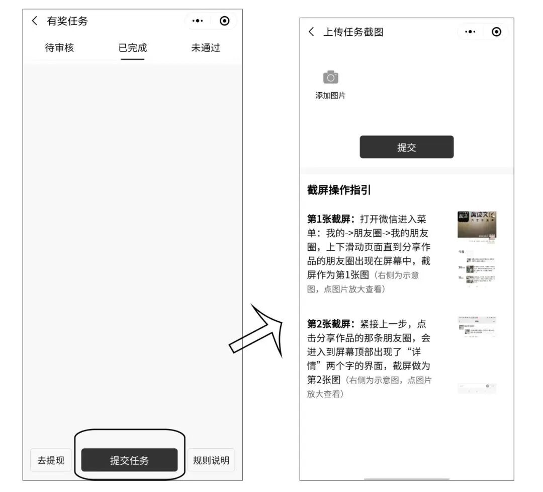 (2)分享朋友圈超过10个小时后,将朋友圈内容完整截图后提交任务,等待客服审核;