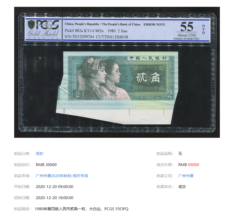 以前人工检查的时候,这种错版币偶尔还能看到几张,现在都是机器检查,几乎已经不会出现了。 也正是因为数量非常少,福耳币价格都很高。比如下面这张短号一分,9800元;