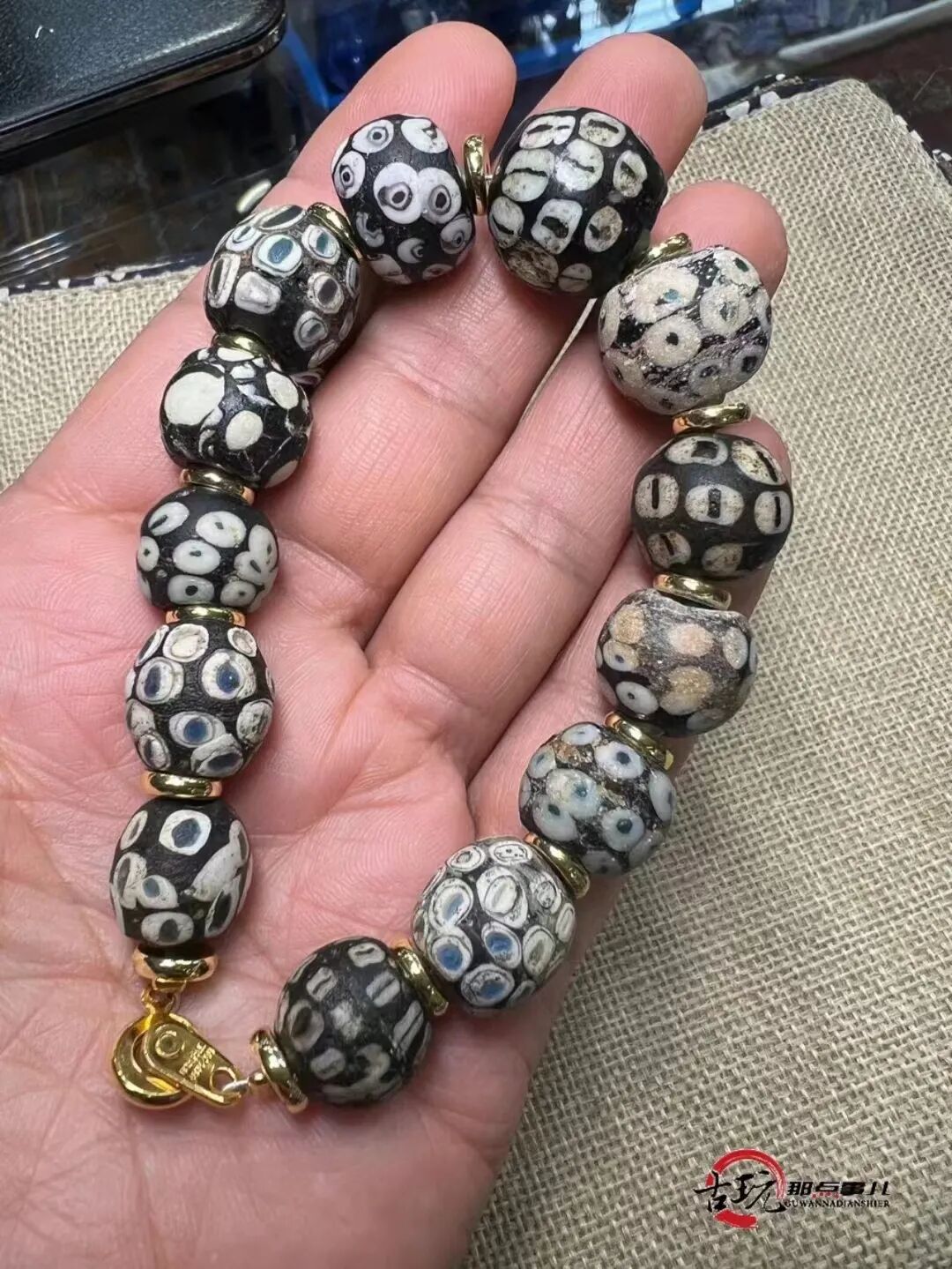 这类珠子名称的由来,大概是从仿生学的角度命名的。因为她的纹饰通常是大圈套着小圈,就像蜻蜓的复眼。此类珠子的来源最初应该是泊来品(外来的文化产品)。这种珠子,通俗地讲就是古代的玻璃珠子,是两千多年前的玻璃制品,代表了当时的最高生产工艺,凝聚着当时的最高科技水平。纹饰瑰丽多变、神密莫测,集美学、冶炼学等诸多工艺于一身。蜻蜓眼在中历史上也仅仅是在战国时期短短的二三百年流行过,此后便由于种种不解地原因,这种古代玻璃冶炼装饰工艺便从中国永久地消失了。著名馆藏资料:1、加拿大安大略博物馆;2、日本美秀博物馆;3、湖北省博物馆;4、湖南省博物院