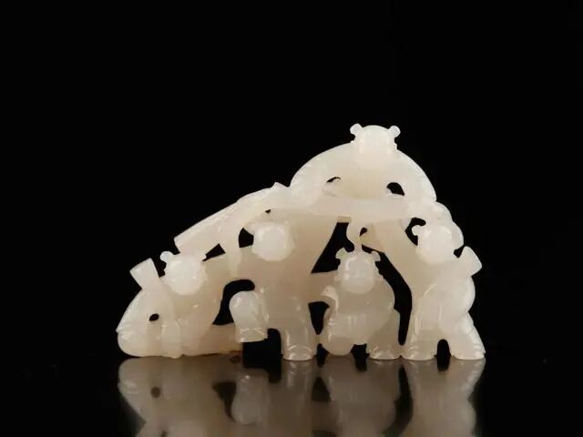 五子登科本为中国民间谚语,最初来源于民间故事,话说五代后周时期,燕山府有个叫窦禹钧的人,他的五个儿子都品学兼优,先后登科及第,故称“五子登科”。此件藏品玉质细腻,雕工精美,童子憨态可掬,五官精致,开脸喜庆,手持书卷,姿态各异,衣物纹饰流畅,刀法老练,包浆浑厚。