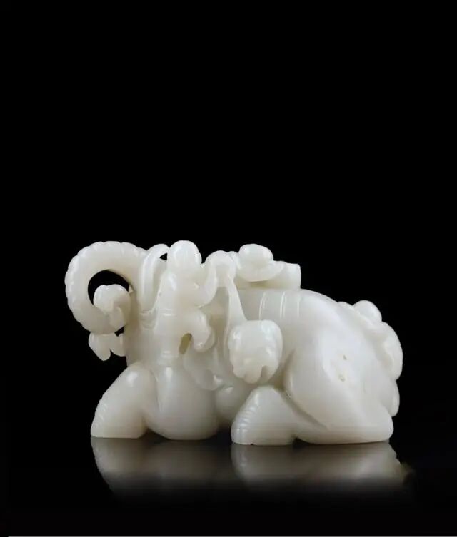 Lot 223 明代 和田玉雕童子洗象摆件