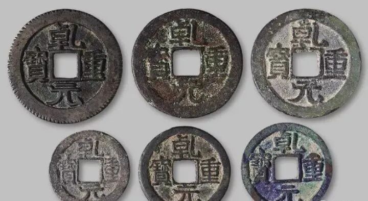 唐高宗武德初年时,所铸的开元通宝钱数量不多,旧钱与古钱在此时已渐退出流通,市场中钱币不足,直到唐太宗贞观初年时,交易时仍有用布帛的。朝廷怕出现那种隋朝时的通货膨胀,市场上虽然需要钱币,但却小心谨慎,不肯增加发行,反而还鼓励以物易物,大力疏导通货回流。当时是一斗米只需三五文钱,老百姓零用时大感不便,虽用布帛,却太不灵活。同时中国同海外各国的交流也日渐增加,钱币大量外流,这一切都使国内交易感到乏力。由于这些原因,民间私铸行为渐渐又起。私铸钱虽然比较小,但有的质料铸工都还可以,所以有的地方把它当官钱使用了,以两三枚抵官钱一枚。私铸钱能够与官钱并使不冲突,这在历史上也是少见的。唐高宗时,政府看到通货紧缩的利益却为私铸者所得,大感不满,命令取缔私铸,并以五比一的比率用官钱换私钱。但缺少人问津,甚至有把私钱收藏也不兑换的。于是在乾封元年(公元666年)推出“乾封泉宝”,以一枚当开元通宝十枚行使,目的似在于增加发行,刺激物价,使私钱失去存在的依托。乾封泉宝直径2.5厘米,隶书,旋读,光背,铜料精纯,铸工良好。在中国钱币史上,钱文用泉宝的也极少见。但此大钱推出后效果并不好,老百姓对大钱并无兴趣,更为害怕通货膨胀,因而纷纷收藏开元钱,致使私钱大涨,到最后也不见了,只剩大钱。朝廷见此情景只得下令停铸,以流通的乾封大钱以一比一开元钱行使之。唐玄宗初期,朝廷吸取经验,再次整顿私钱,先鼓励生产,扶植商业发展,铸造开元钱时,只有新钱质量达到标准才准流通,以增加官钱信用,且增加铸量,挤兑私钱。这次所铸的新开元钱,元字也有挑笔的区别,背文增加了星、日纹等。 唐玄宗后期发生的“安史之乱”是唐朝历史的转折点。安禄山和史思明这两个叛将也发行过钱币——“得壹元宝”和“顺天元宝”。这场大乱起于天宝十四年,至肃宗广德元年始告平定,前后九年。虽然导演这场变故的安禄山和史思明早已灰飞烟灭,但是他们铸行的德壹元宝与顺天元宝却时有所见,这一对短命钱也是那一段历史的见证,它仿佛向人们诉说着那段悲怆的往事。 唐朝玄宗开元天宝年间,政治腐败,藩镇继起,安禄山率先反叛,其部将史思明很快占据了河北十三郡。唐明皇从笙歌艳舞中惊醒,丧魂失魄,仓惶出逃,急急如丧家之犬。公元789年,叛将史思明占领魏州称“燕王”(另一头目安禄山被其子杀死),铸“得壹元宝”,第二年又据洛阳,称燕国,自称“大燕皇帝”,建元“顺天”,遂罢“得壹元宝”而铸行“顺天元宝”。得壹元宝在很短的时间内铸而又废,这可能与晋武帝司马炎的问卜的故事有关。晋武帝登基时,曾求告上苍,以卜世数,结果不想简策上的数字竟是“一”字,意味着晋王朝只能一世而终。这时司马炎吓得浑身发抖,朝臣们面面相觑,只有大臣裴楷引经据典从容地说道,臣闻老子曰“天得一以清,地得一以宁,王侯得一以为天下贞”。他的这席话使司马炎和噤若寒蝉的群臣们像吃了一颗“定心丸”一样,顿时转忧为喜。但是裴楷的能言善辩毕竟掩饰不了严峻的事实,其时司马家王朝已危机四伏,险象环生了。到了司马炎的儿子晋惠帝手里,八王作乱,国家倾覆灭亡危在旦夕了。史思明想当“始皇帝”,得一是为天下专,盼望着父传子,子而孙,子子孙孙,相传万代。但是他对“一”字也心有疑虑,故在铸钱时把“一”故意写成“壹”。后来他占领了洛阳后,踌躇满志,以为天下非他莫属,但他还是不敢草率行事,借着改元,把“得壹”钱废掉,改铸顺天钱了,以附顺于天意之意。但历史的发展是不以个人意志为转移的,“顺天”不顺,“安史之乱”不久即被平息了,“得壹”、“顺天”这对伪政权的钱已就悄然地退出了舞台,成了历史的陈迹。得壹钱铜色较红,制作精整,钱文为隶书,钱背多见月纹,而顺天钱形制同得壹钱,但钱体略重。顺天钱铸造仅一年有余,而得壹钱时间更短,因此所出甚少,故有“顺天易得,得壹难求”的说法。 唐肃宗乾元元年七月,御史中丞奏请铸行“乾元重宝”,以乾元重宝一枚当开元通宝十枚。乾元重宝钱径2.7厘米,重5.97克,钱文隶书,顺读,书法精妙,有光背及背下俯月、朱雀、穿上或穿下祥云或星文的。政府于乾元二年铸行乾元重宝重轮钱,钱背面外廓双层,故叫 “重轮钱”,以一当开元通宝五十文。重轮钱钱径3.5厘米,钱文隶书,顺读。这两种“重宝”在发行中不断减值, 乾元重宝重轮钱流通至第二年,改为一当三十,开元通宝小平钱与当十钱皆以一当十,后再改与乾元重宝重轮大钱都以一当三,直至一当一行使。另一方面,在货币不断减值的情况下,物价却不断抬高,一斗米涨至七千文,以至于饿死的人相枕于道。到肃宗死后代宗继位时,便下令停铸大钱,独行开元通宝小钱。