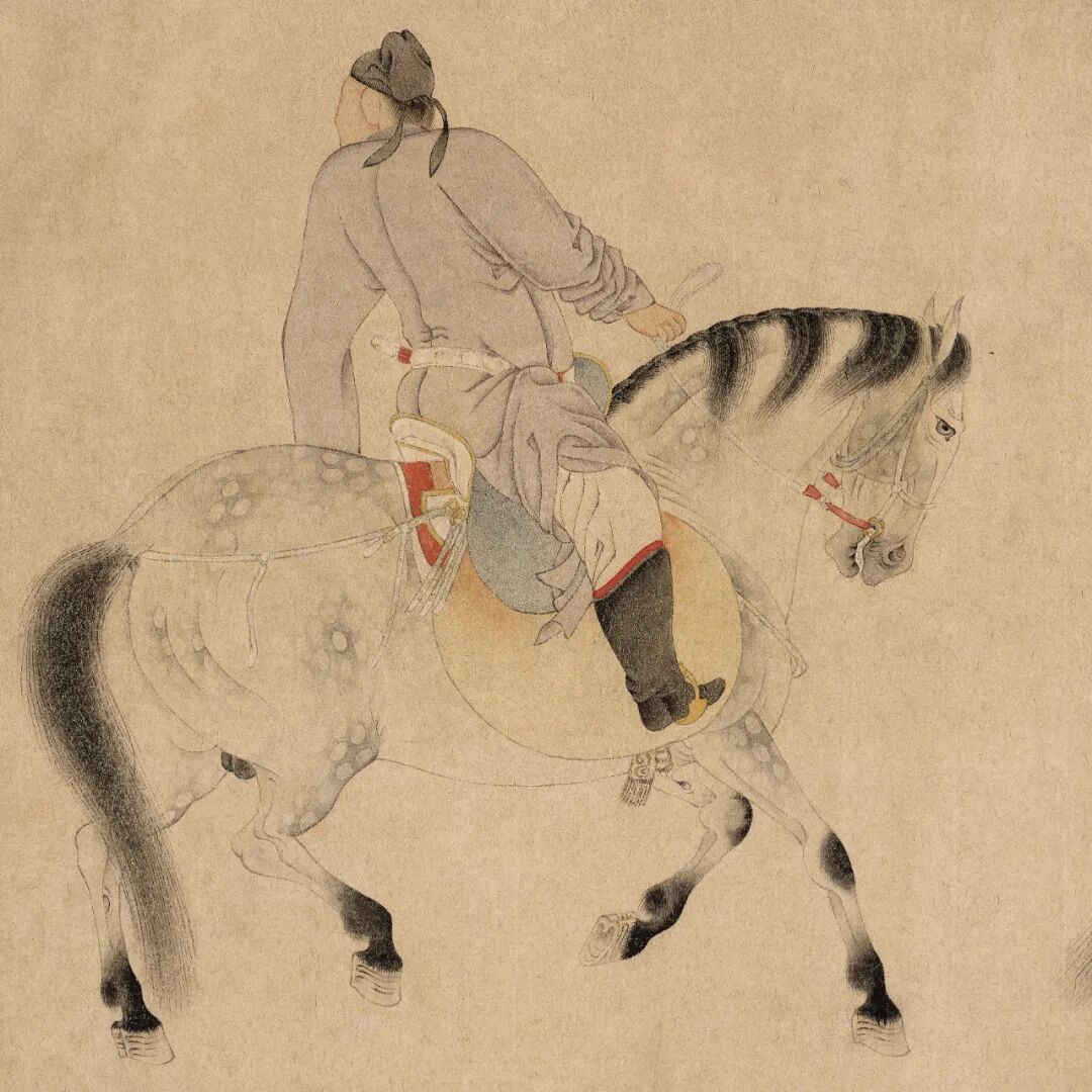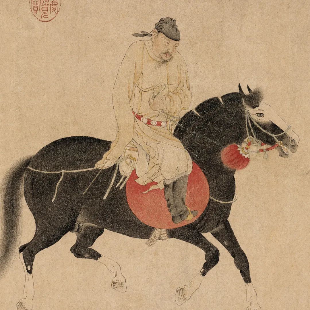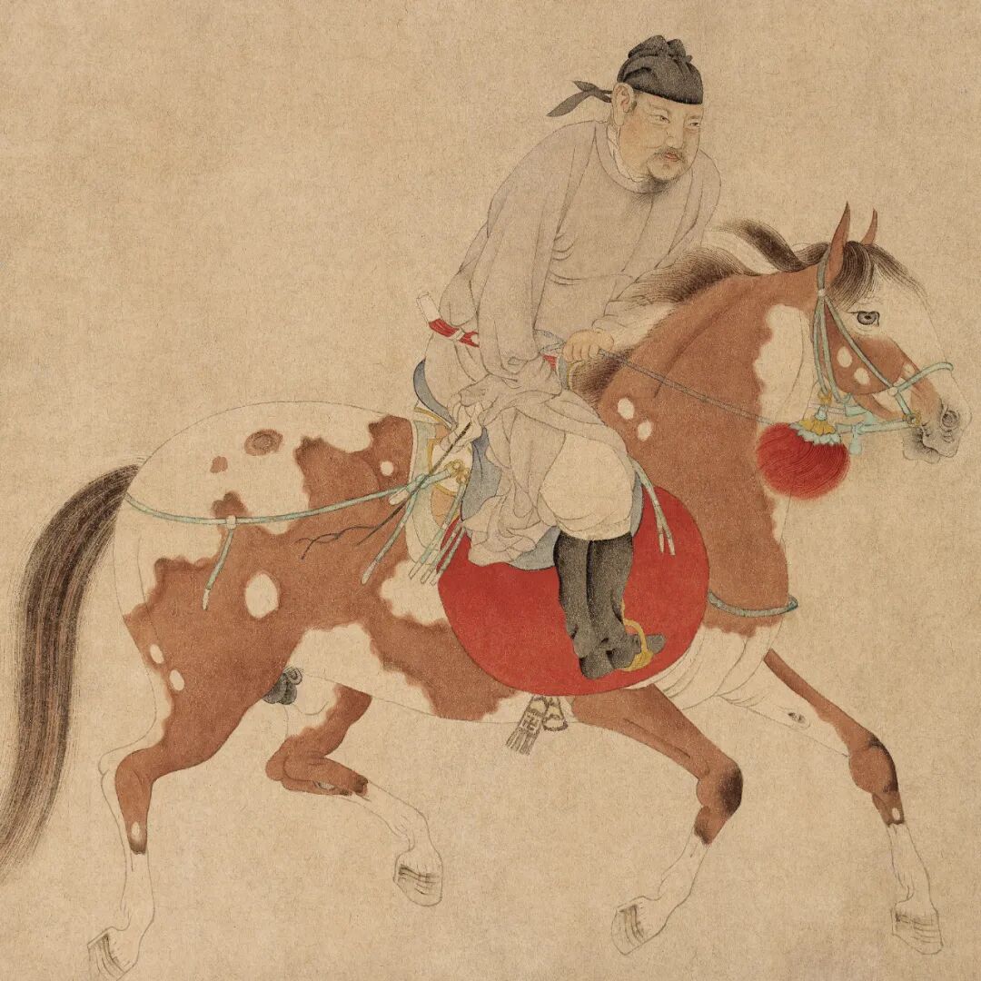 身着淡黄衣、骑乌骓马、左手握缰者为宋王李宪——