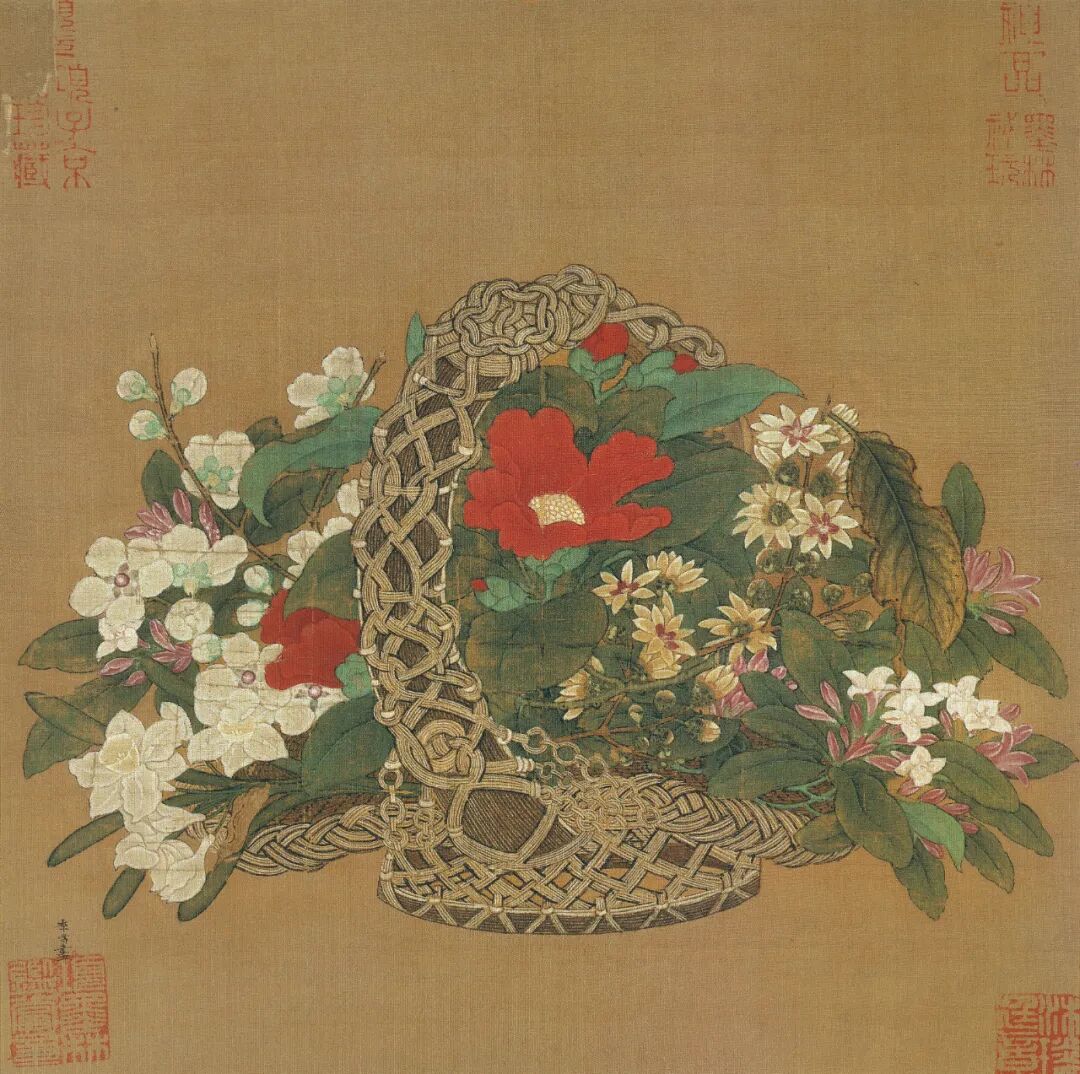 台北故宫也有一件,篮中盛茶花、梅花等冬花;