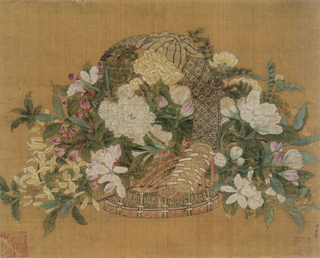 李嵩担任南宋宫廷画师,历光宗、宁宗、理宗三朝(1190-1264),时间可谓久矣。北京故宫博物院藏有李嵩的一件《花篮图》,篮中盛有蜀葵、百合和夜合花等夏花;