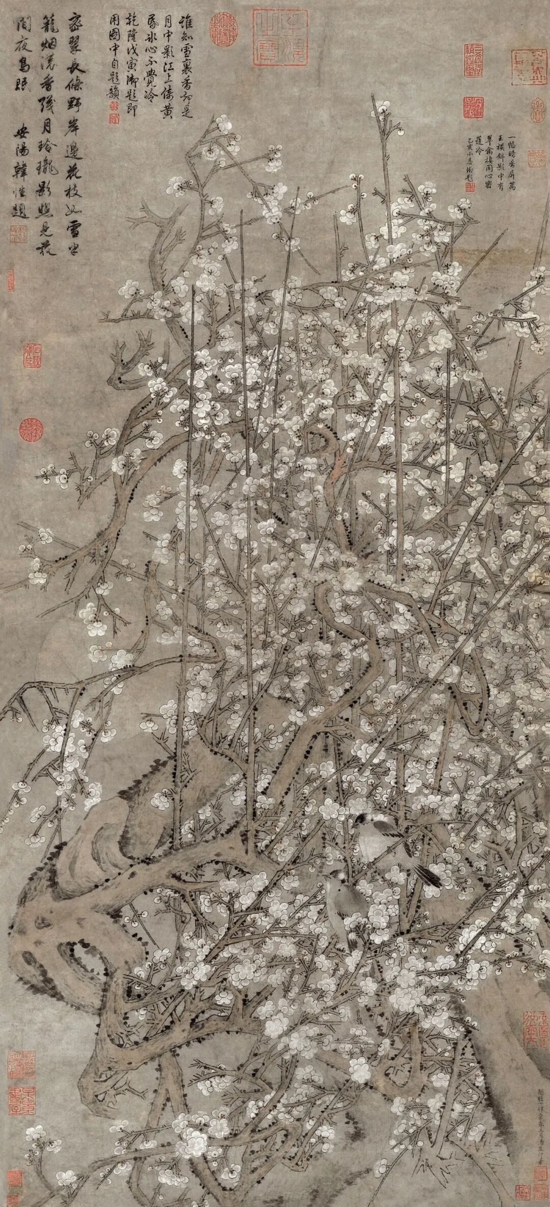 此作曾经近代著名鉴藏家吴湖帆收藏,吴氏“梅景书屋”斋名,即源于他的收藏宋刻本《梅花喜神谱》和汤正仲的《梅花双鹊图。