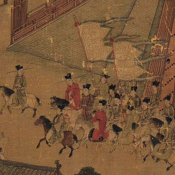 本幅画中“五王醉归”的典故,即是以唐代“让皇帝”李宪让位于弟弟李隆基的事迹,称颂元仁宗孝悌之德。