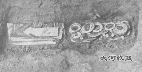河南辉县固围村魏王室祭祀坑出土玉器情形。