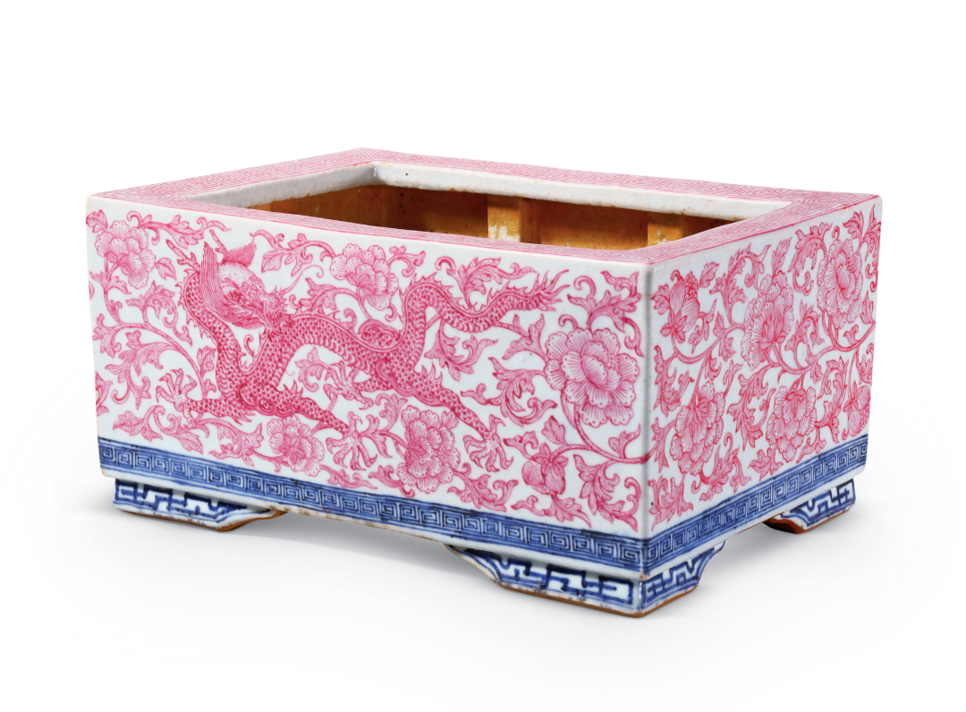 清乾隆青花胭脂红穿枝云龙纹长方花盆
