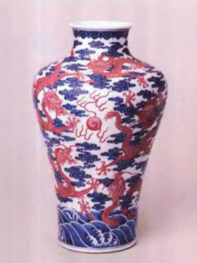 清乾隆 青花釉里红云龙纹玉壶春瓶
