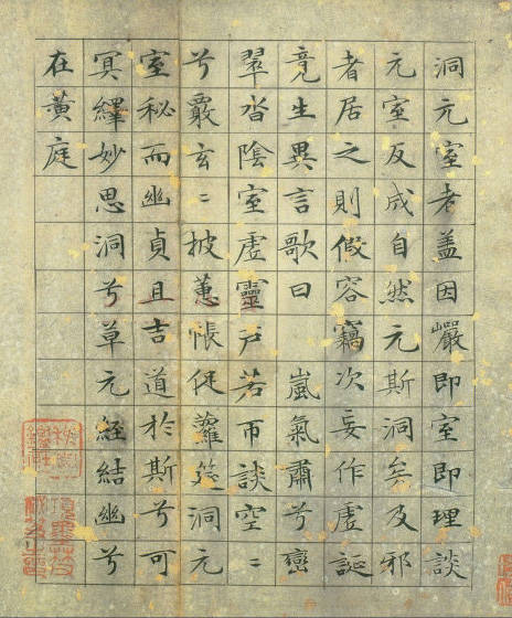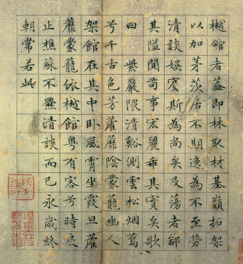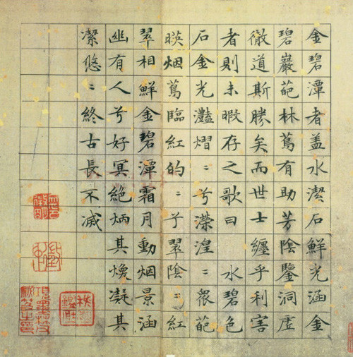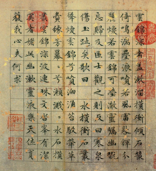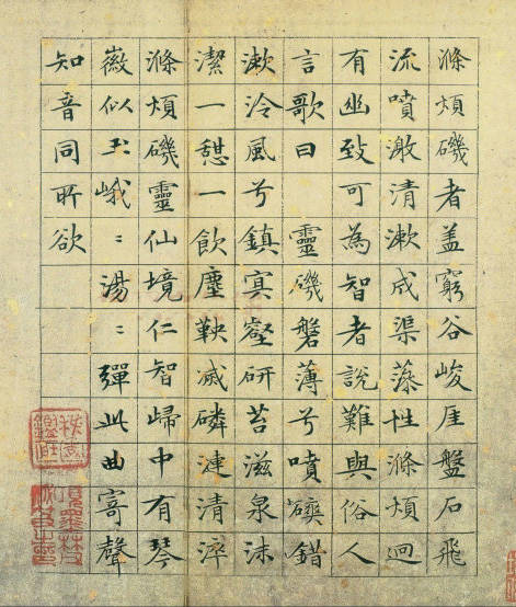 《草堂十志》,字迹清雅、婀娜多姿,是文氏传世之作中的一件精品。此件册页纵23.2厘米,横28.4厘米,铃有乾隆、嘉庆、宣统内府鉴藏印,现藏于故宫博物院。