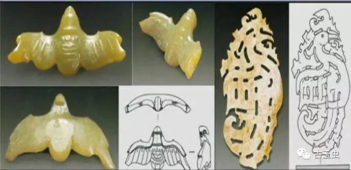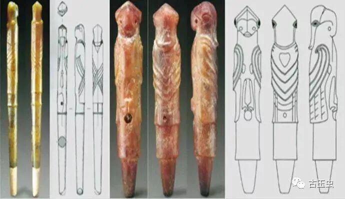 14、这些笄,都饰有鹰的图象,在整个龙山时期,黄河流域都曾出土过类似的物件。就连神木石峁遗址也不例外,看来,石家河才是这些鹰形玉笄的老