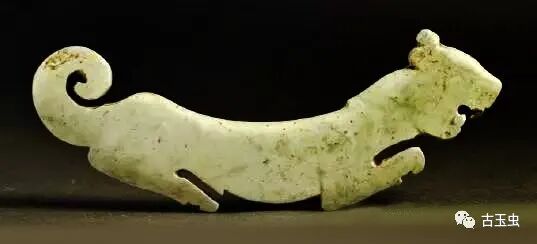 7、精美的虎头饰,是石家河文化玉器的一大特色。传说巴人尚虎,且古代又有以白虎礼西方的传说。这些雕饰与线条,已经初具商代玉雕的特征。