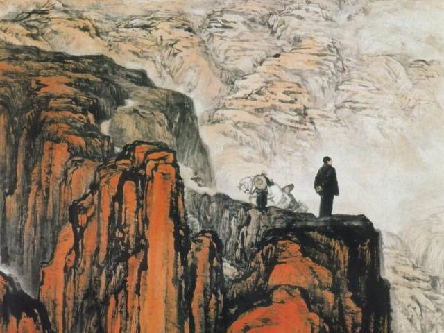 这是一幅冬夜行军图,描写的是娄山关激战之后,红军翻越娄山关行军的图景。凛冽的西风正猛烈地吹着,大雁鸣霜,晓月当空。晓月当空,马蹄声零碎而又纷杂,军号声声沉郁低回。不要说群山起伏像铁般难以逾越,而今让我们重振旗鼓向前。全词不足50个字,但雄奇悲壮,气势如虹,寥寥数笔,“份量”很重,像一幅出自大师手笔的简笔画。一九三五年十月