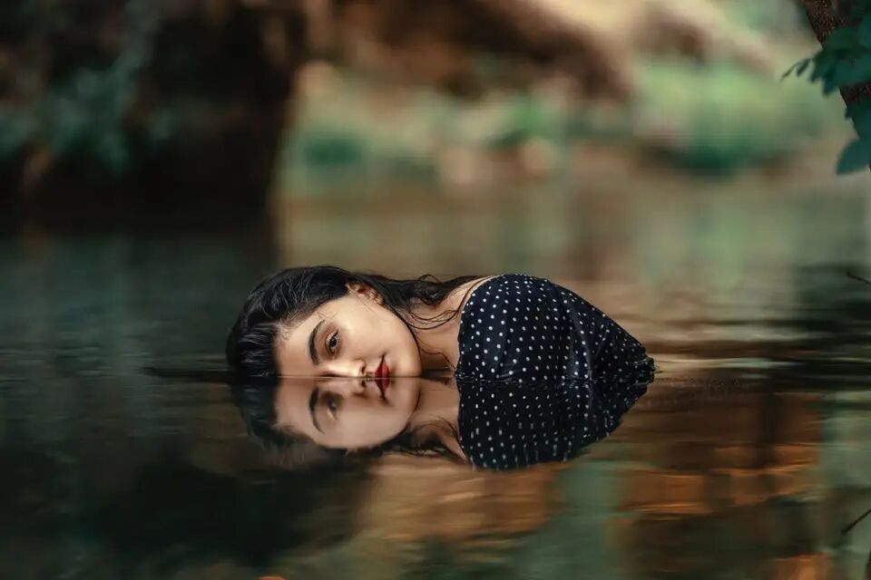 这是一位伊拉克埃尔比勒的女模特,为了拍摄出不一样的效果,直接把头放在水中露出一半,十分的惊艳。