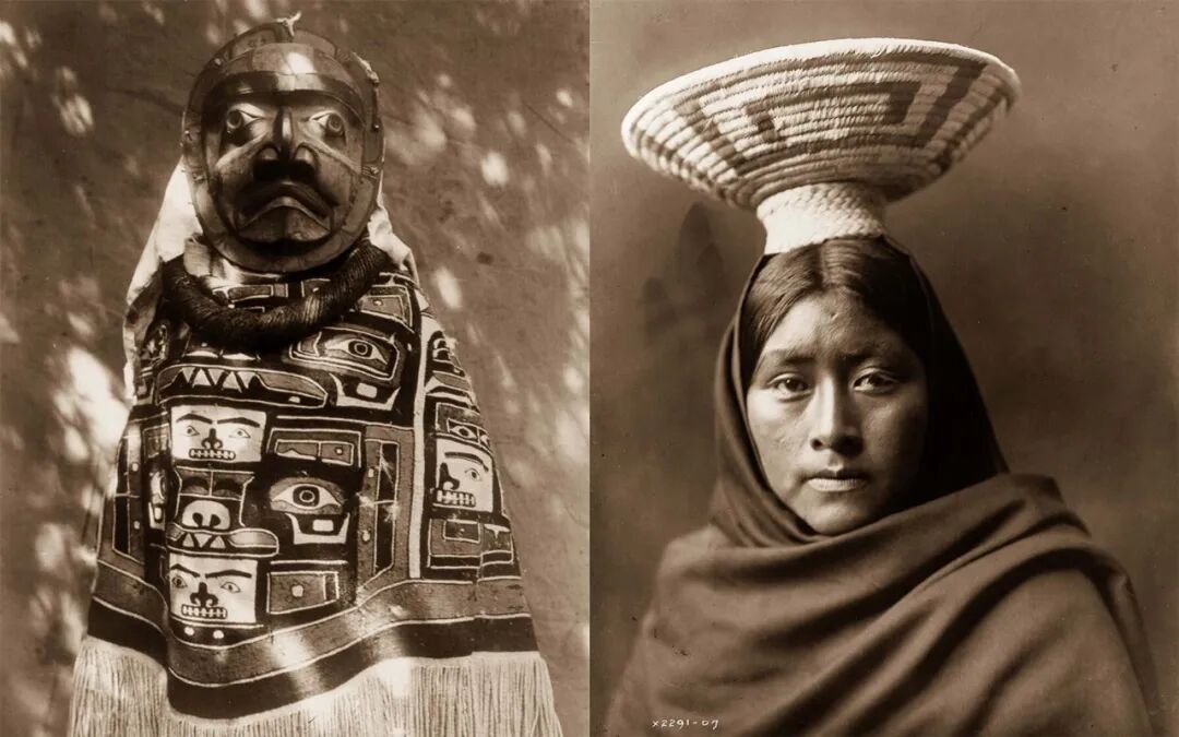 这是20世纪初时美洲的原住民妇女,它们头上戴着的是已故萨满亲属的面具,充满了神秘色彩。