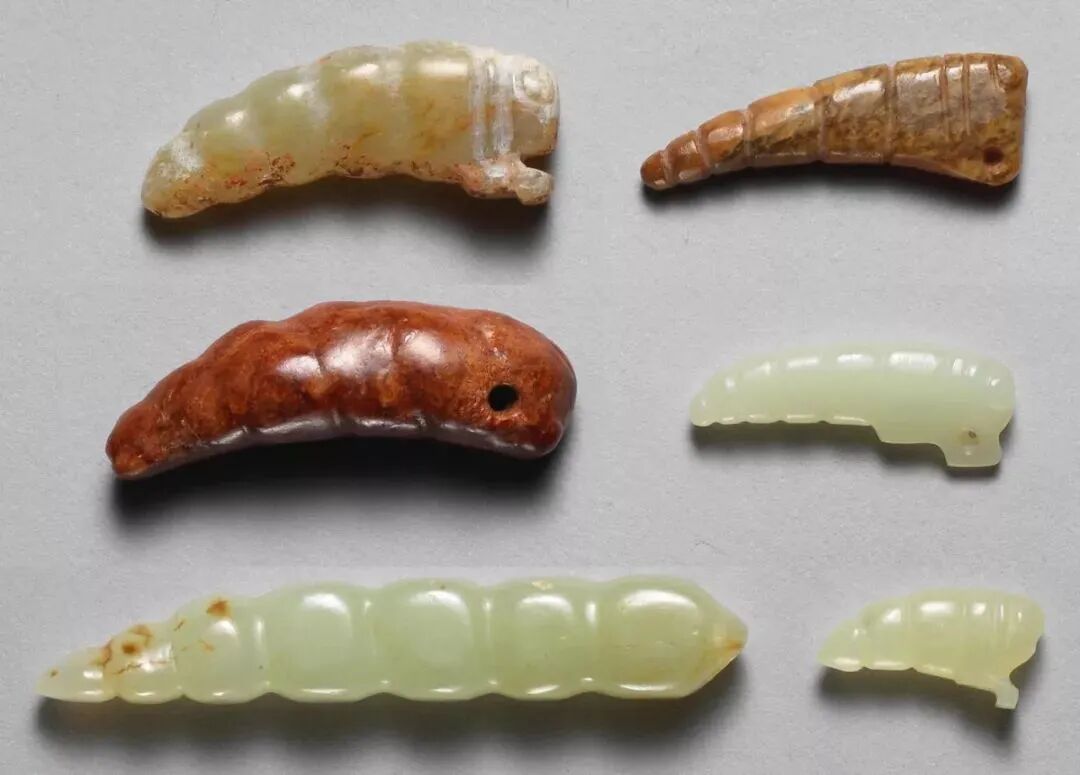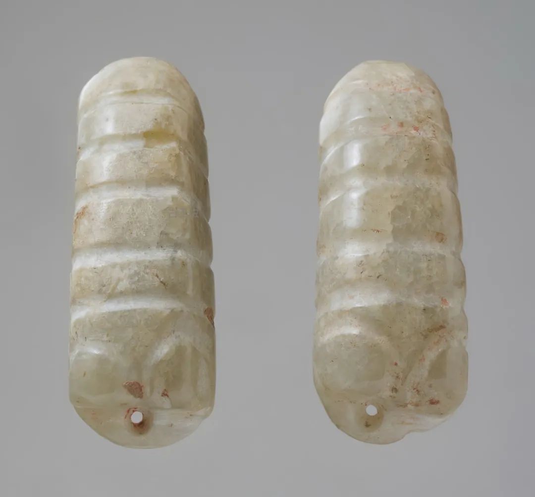 红山文化晚期 约公元前3500-3000年 玉蚕蛹一对