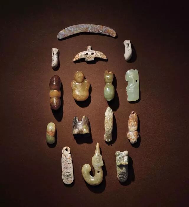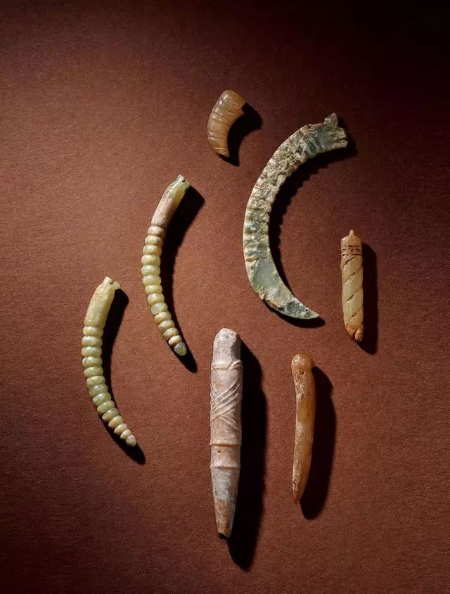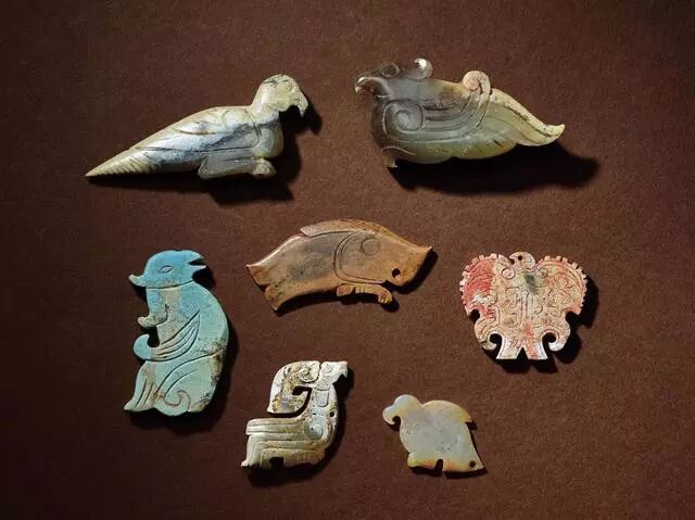 文化期 玉兽形珮五件、蝉形珮两件、蚕形珮五件、鸟形珮一件、饰件两件