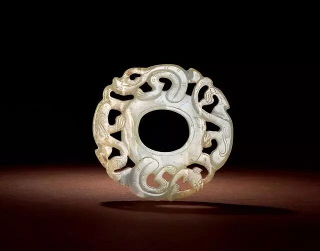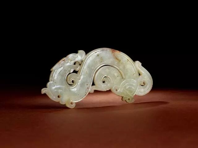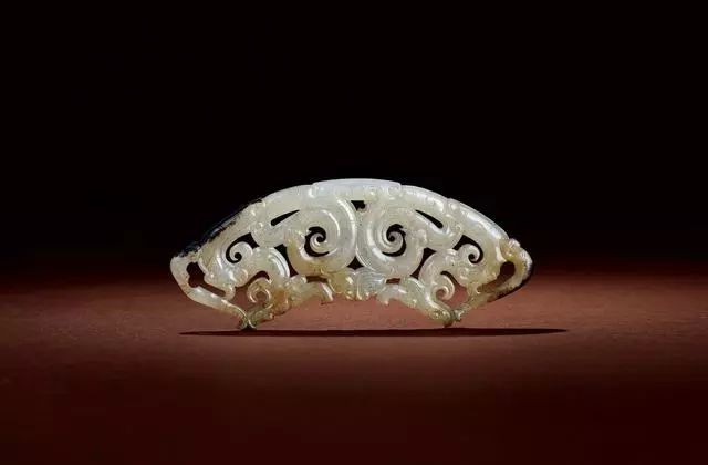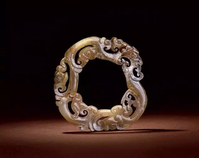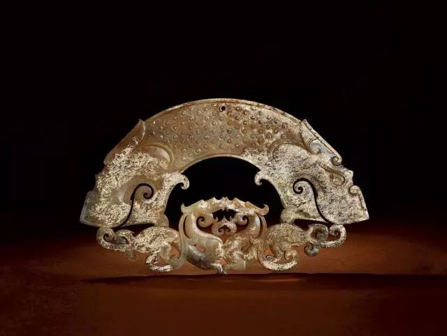 战国 玉镂雕兽面双蟠龙纹璜