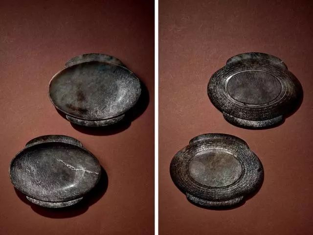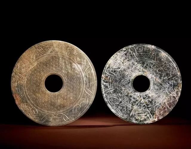 西汉 青玉兽面龙凤谷纹璧 (两件)