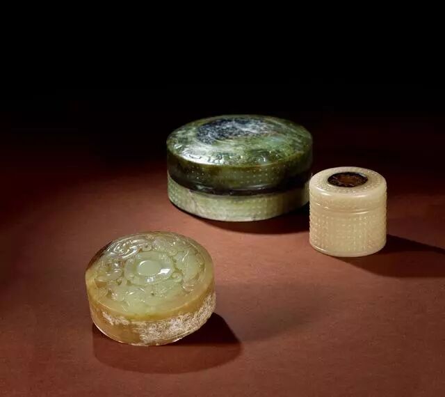 汉 玉兽面螭龙纹盖盒、谷纹盖盒、螭龙纹盒盖 (各一件)