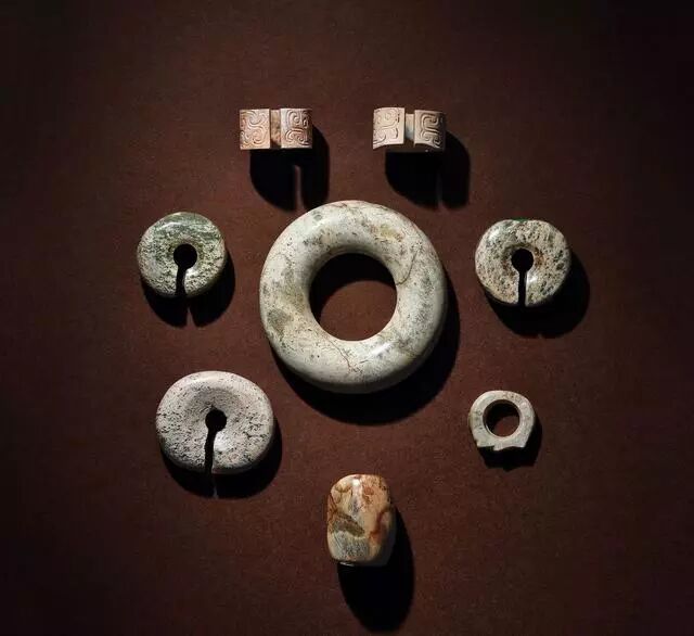 文化期-西周早期 玉环两件、玉玦五件、玉勒子一件
