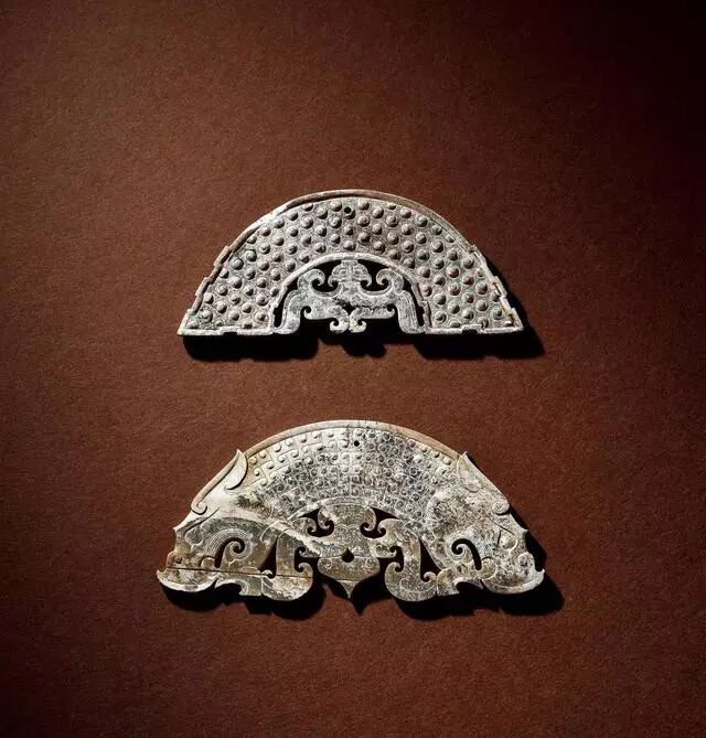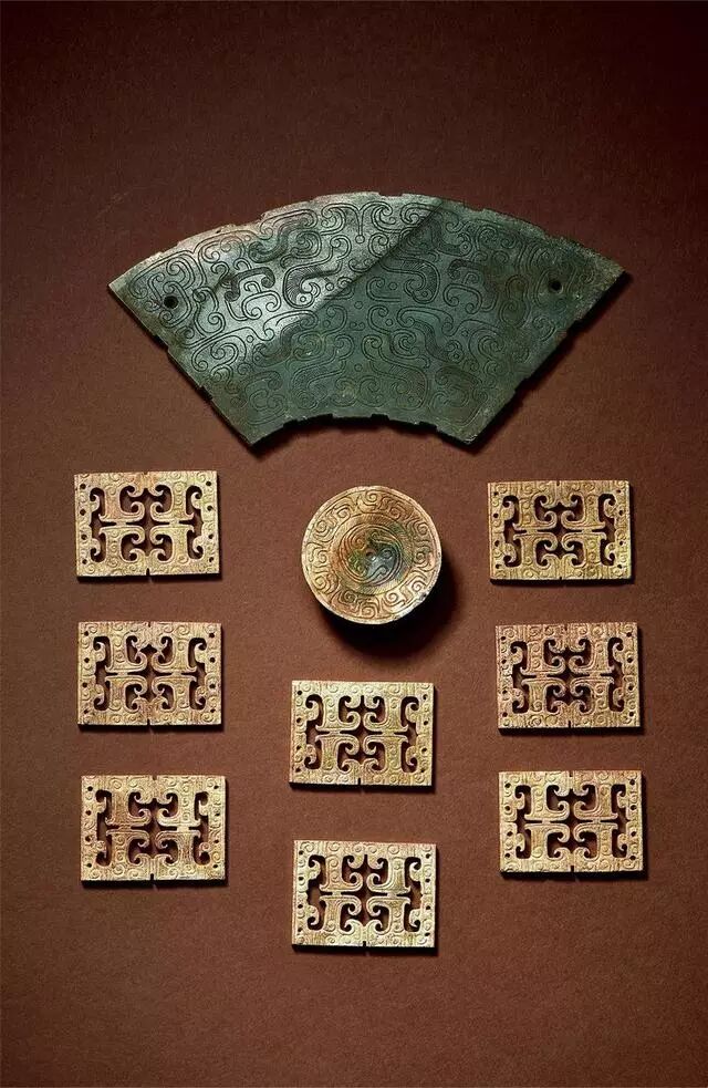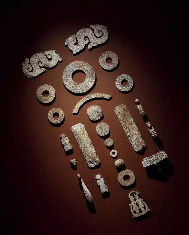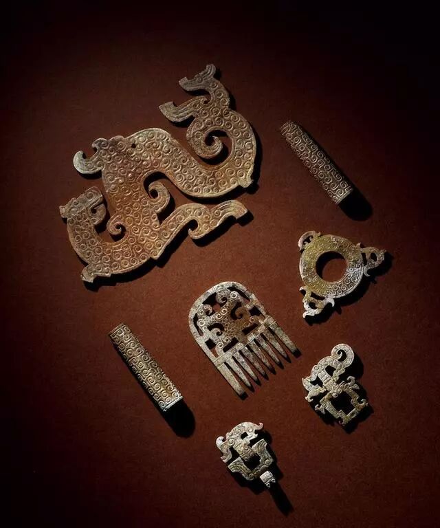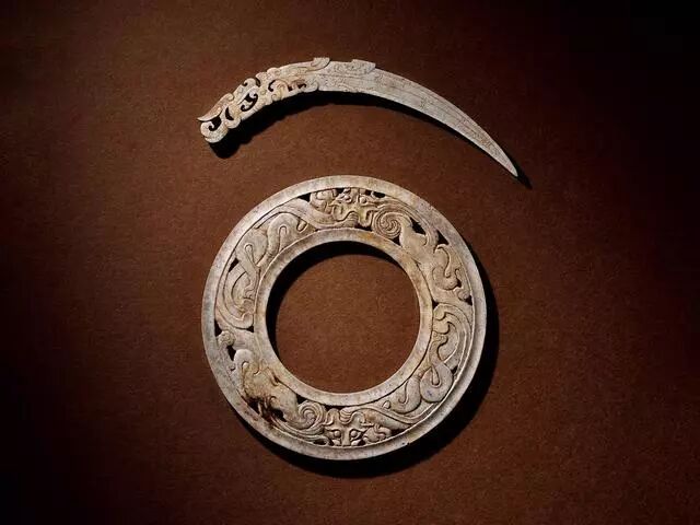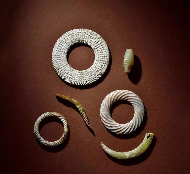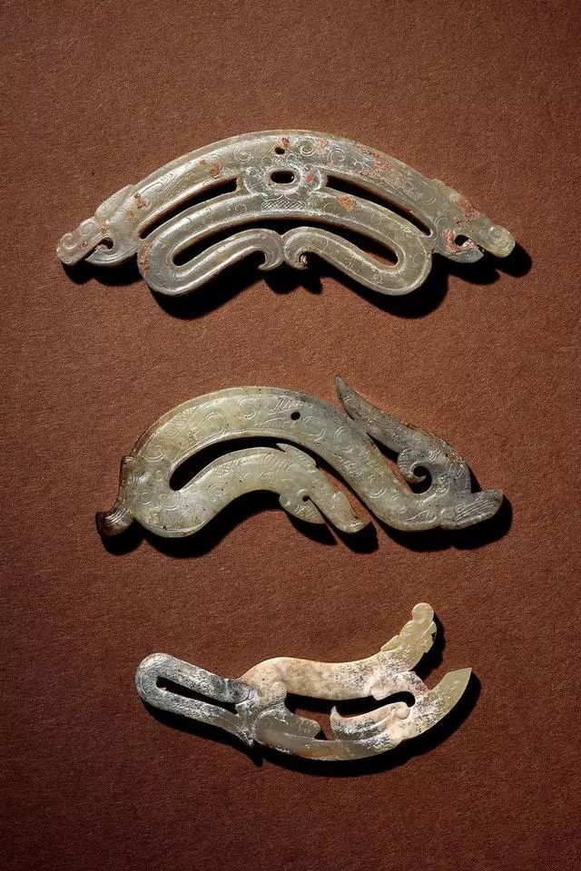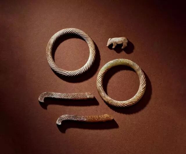 玉龙首谷纹璜三件、玉镂雕盘龙纹璜和玉谷纹璧各一件