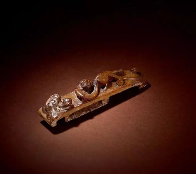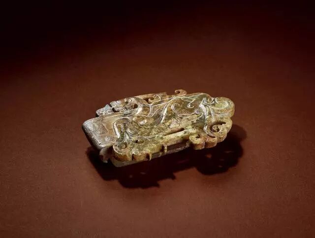 战国-西汉早期 玉兽面螭龙纹带扣