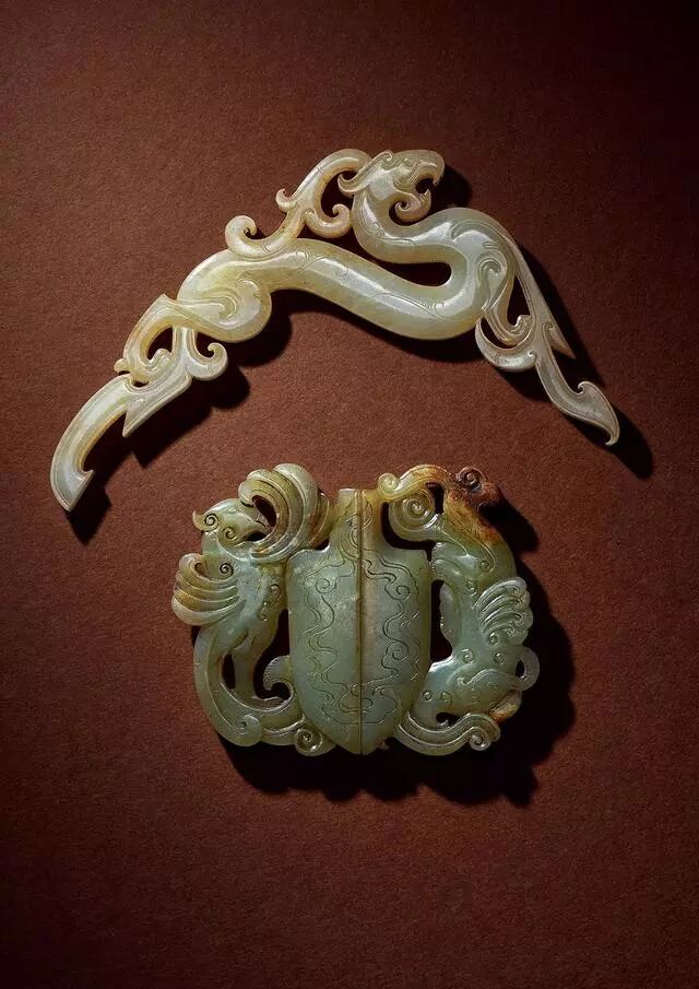 汉 玉镂雕螭龙纹环、玉镂雕龙首觹 (各一件)
